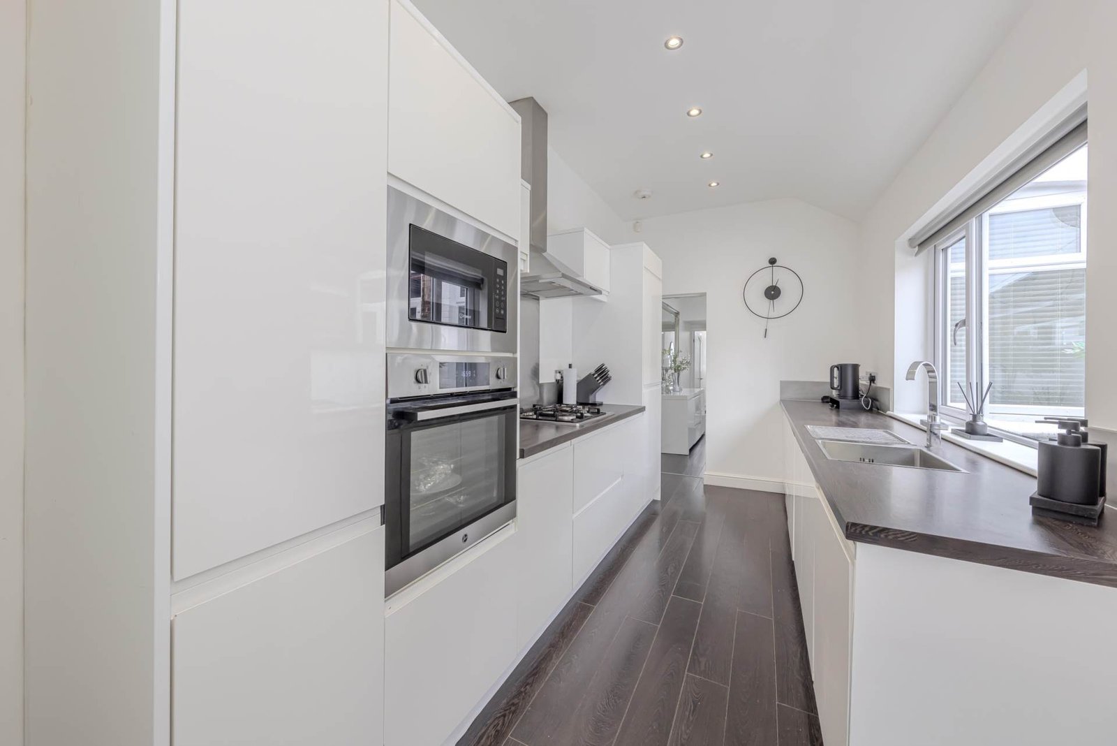The stunning kitchen is a true highlight of the property, fitted with contemporary units and stylish work surfaces that provide plenty of storage and preparation space. Whether you are a keen cook or simply enjoy a well-equipped kitchen, this space is sure to impress. The kitchen also offers access to a private yard, ideal for outdoor dining, gardening, or simply enjoying some fresh air in a secure and secluded setting. A modern bathroom completes the ground floor, fitted with contemporary fixtures and a clean, fresh design.