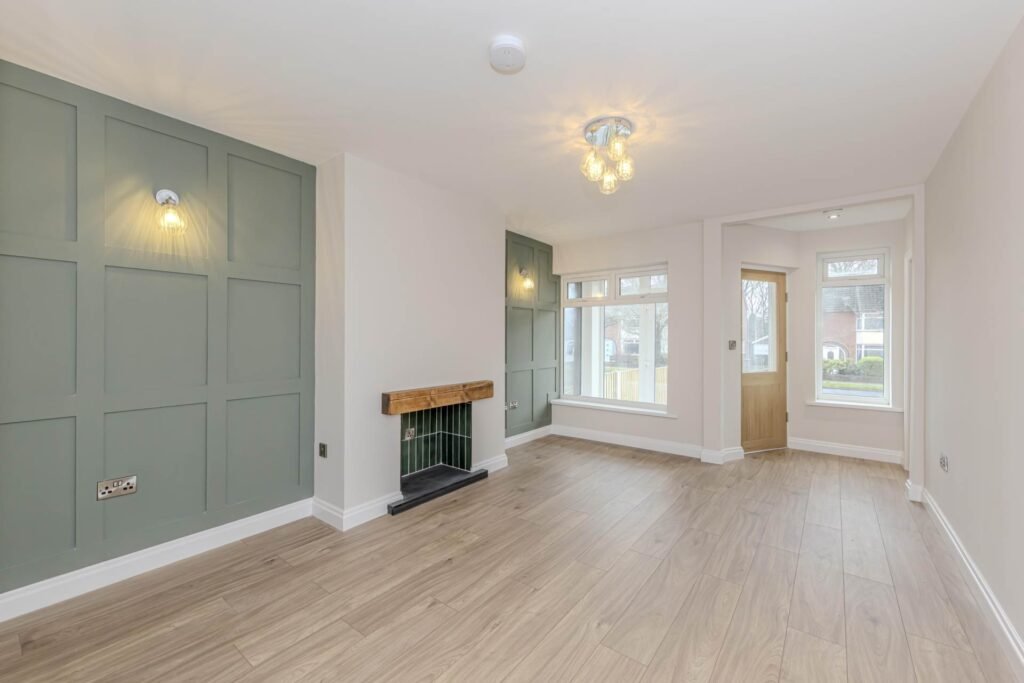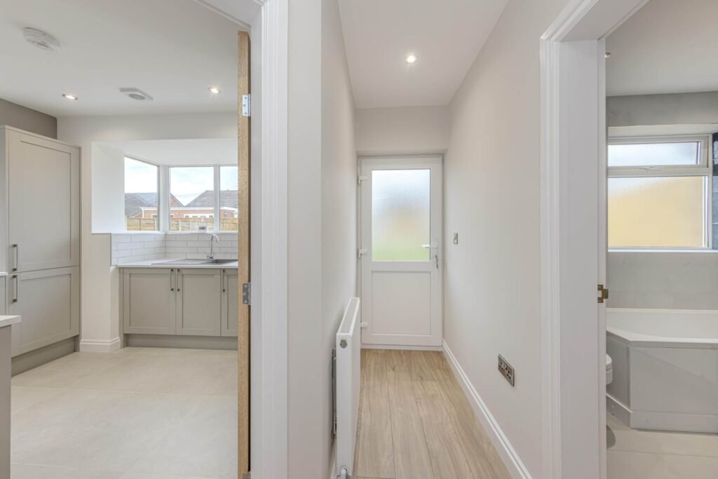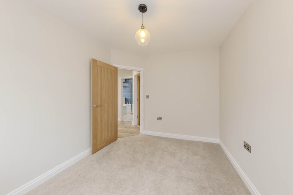 Upon entering, you are greeted by a bright and airy reception room, which serves as a versatile living space perfect for relaxing or entertaining guests. The room benefits from ample natural light streaming through double-glazed windows, creating a cosy yet spacious atmosphere. The neutral décor and quality flooring throughout add to the contemporary feel, allowing you to personalise the space with ease.