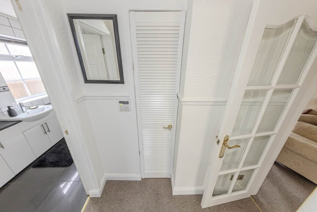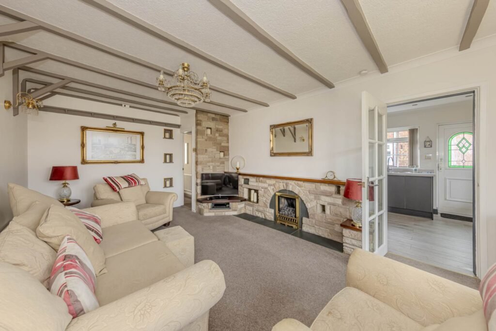 Inside, the bungalow boasts two good-sized bedrooms, both bright and airy, offering plenty of natural light through double-glazed windows. The accommodation is completed by a well-appointed bathroom, featuring modern fittings and a clean, neutral décor.