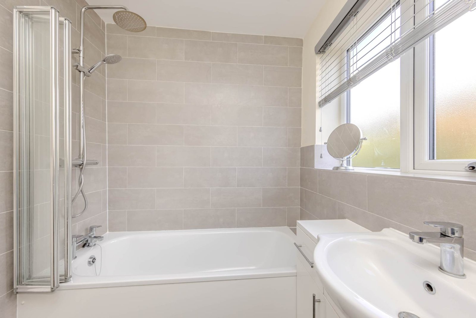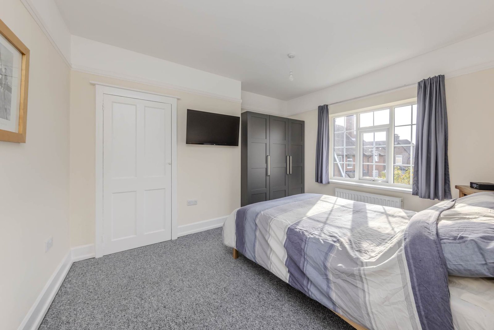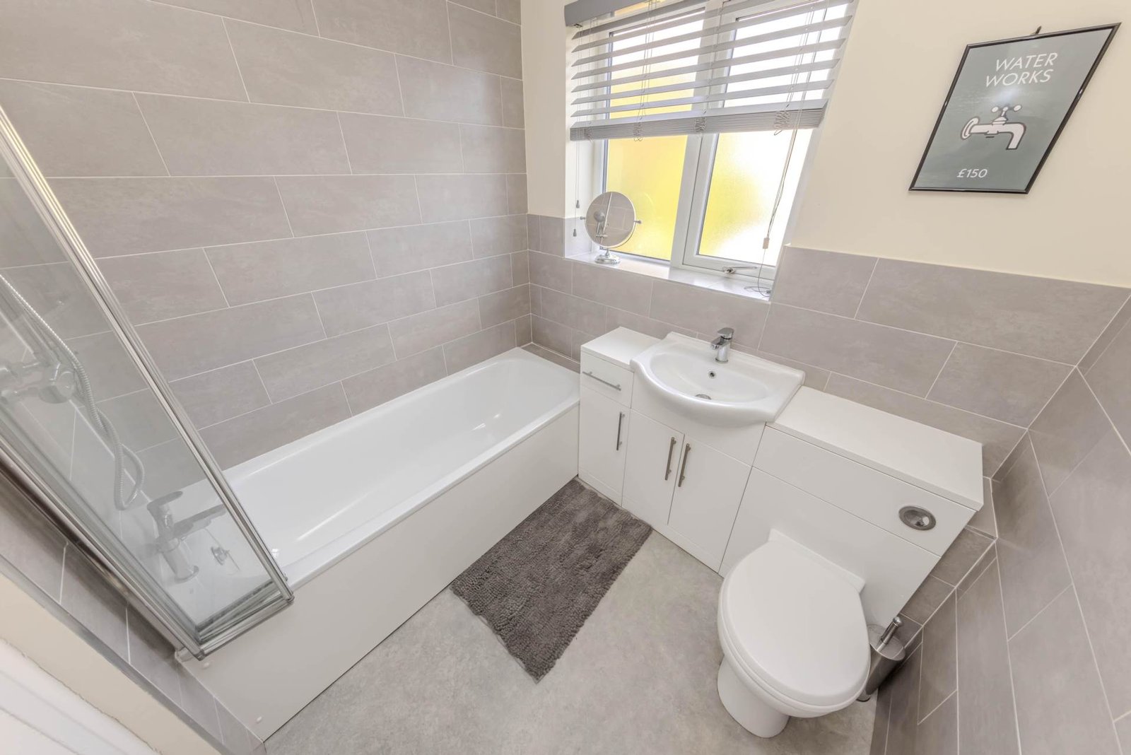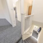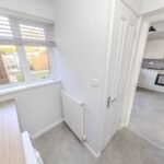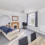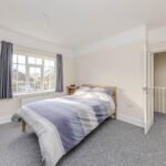 Upstairs, there are three generously sized bedrooms, each decorated in neutral tones and flooded with natural light. The bedrooms are serviced by a modern family bathroom, complete with a bath, shower, and WC.