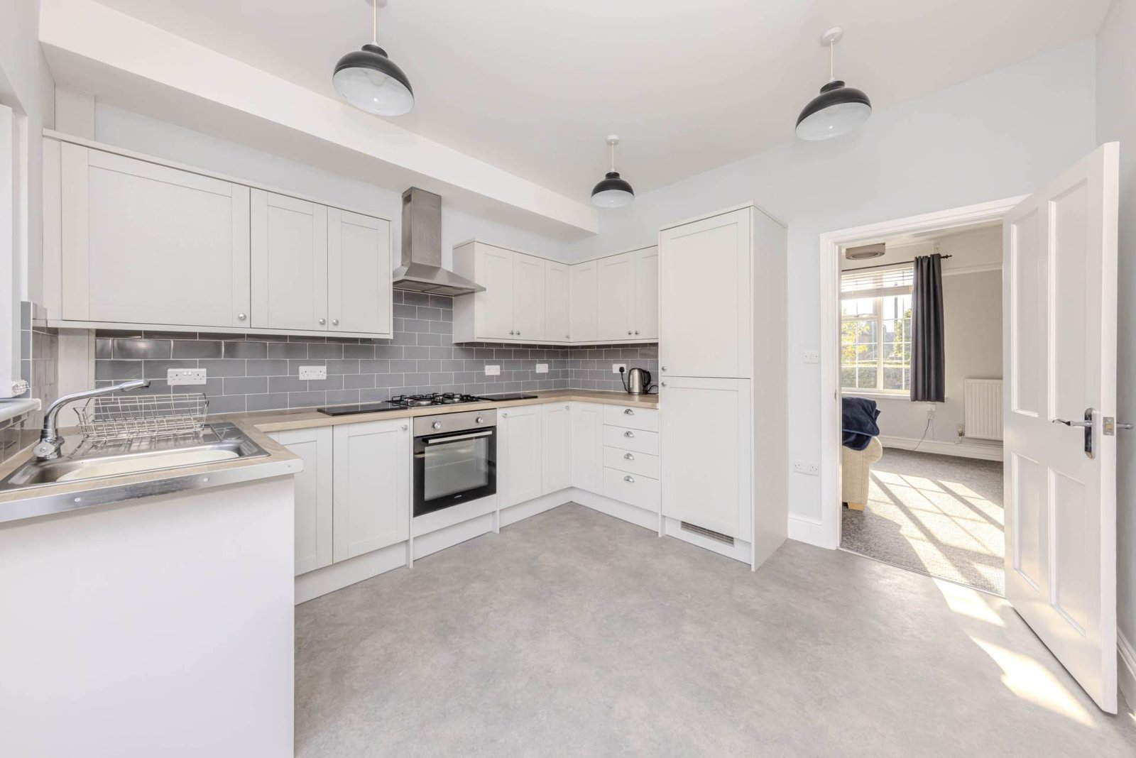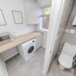 The kitchen is located at the rear of the property and is fitted with modern appliances, including a gas hob, electric oven, and extractor fan. The kitchen also benefits from ample storage space, making it a practical and functional space for cooking and dining. and the added benifit of utility room with guest wc.