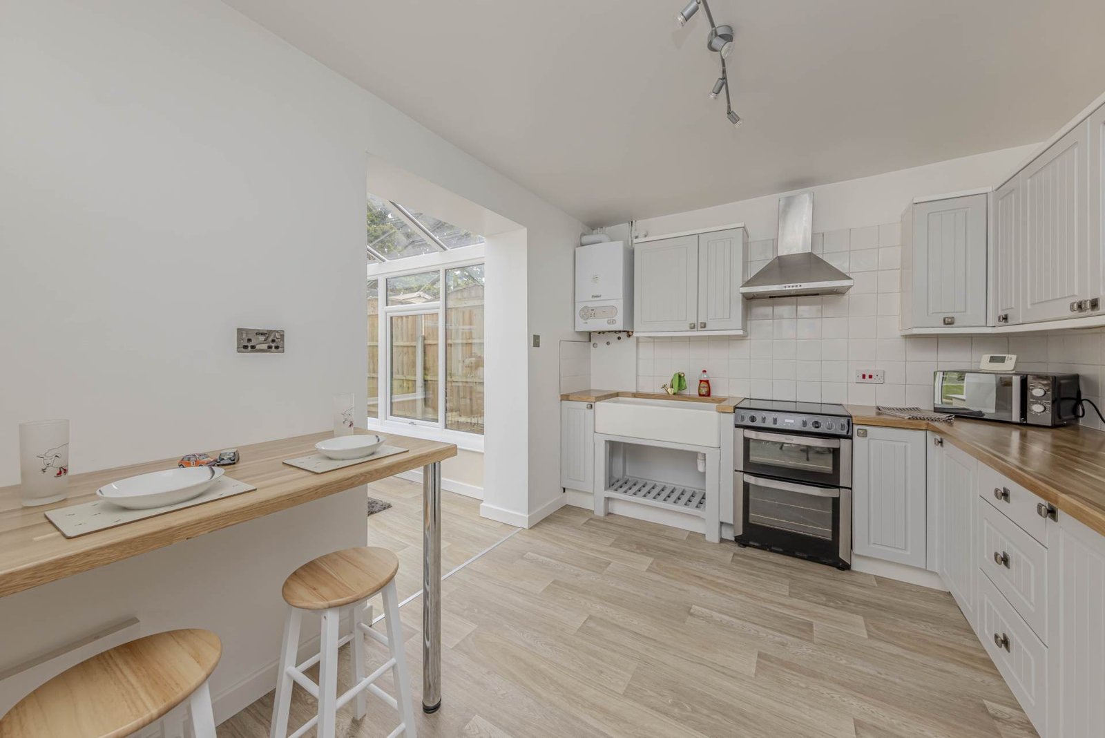 Outside, the property boasts a double garage, providing ample storage space for vehicles or outdoor equipment. The private rear garden is a tranquil oasis, perfect for enjoying the summer months and al fresco dining.