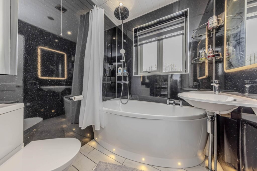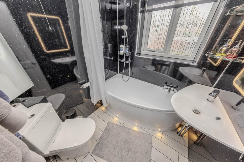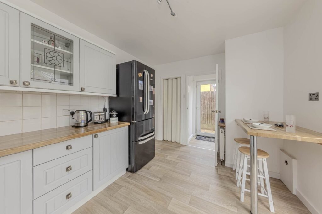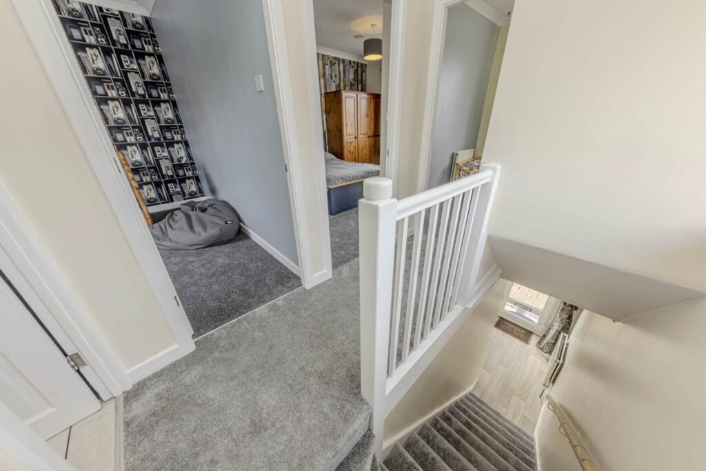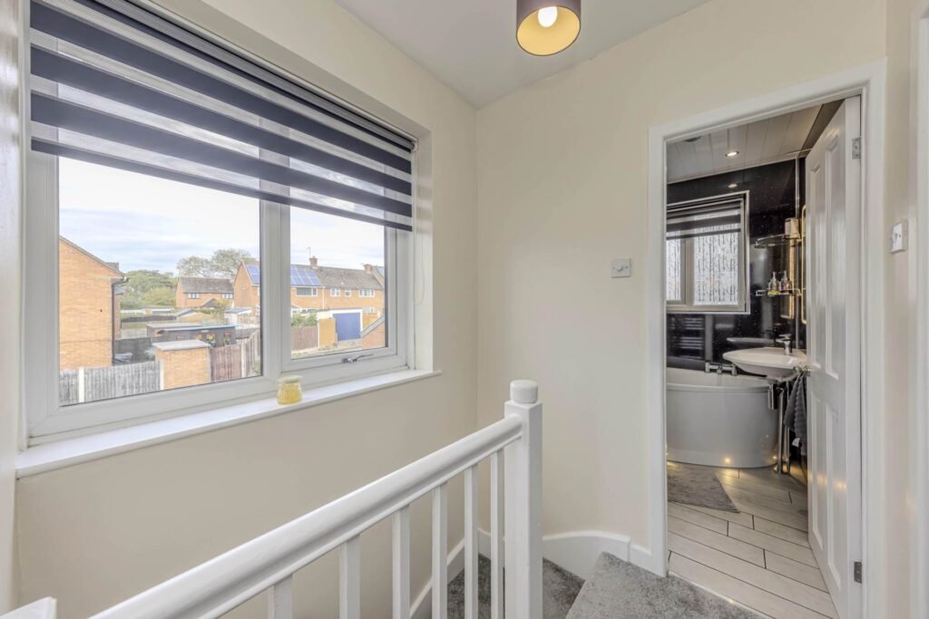 Upstairs, you will find three well-appointed bedrooms, offering plenty of space for a growing family or guests. The bathroom is modern and stylish, with a bath and shower over, perfect for unwinding after a long day.