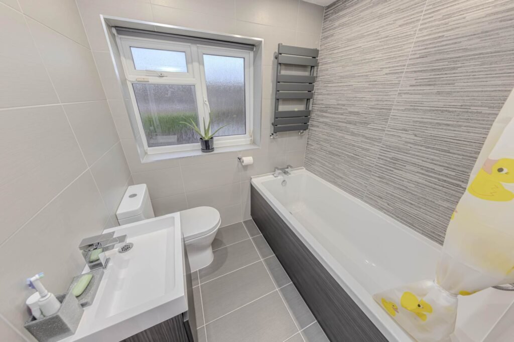 There are three good-sized bedrooms, each offering plenty of space for rest and relaxation. The bathroom is modern and features underfloor heating, providing a cosy environment for unwinding after a long day. The bathroom`s contemporary fittings complement the overall style of the home, ensuring a fresh and clean feel.