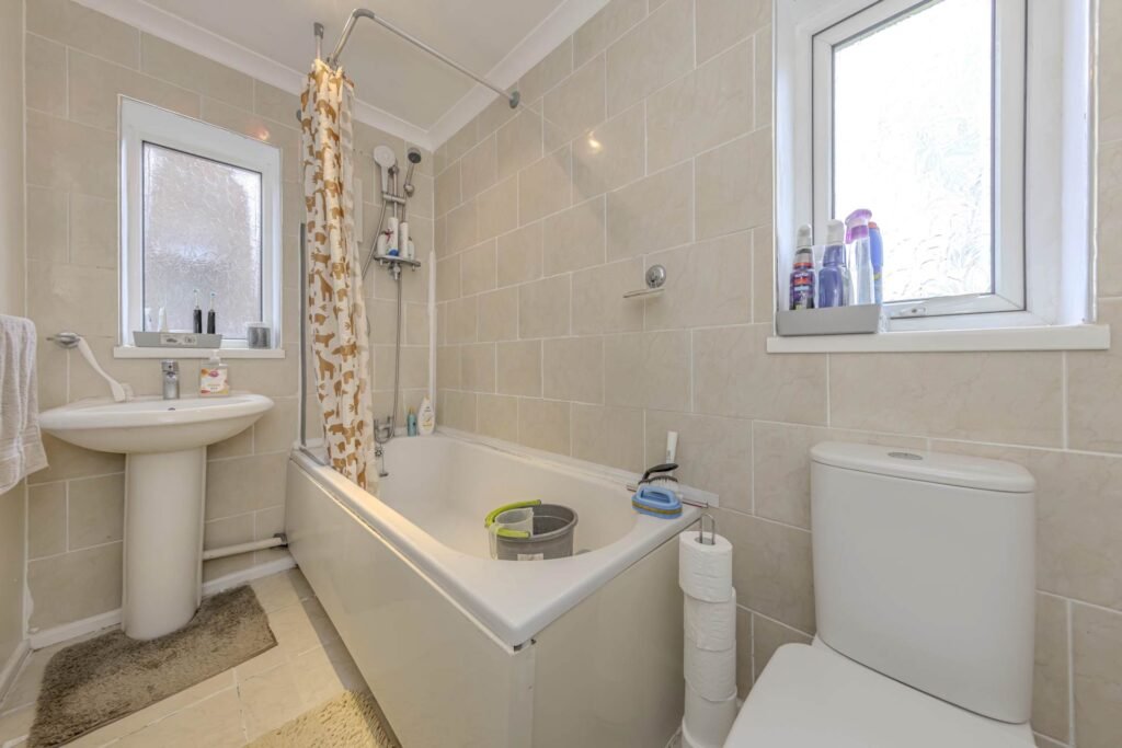 Adjacent to the reception room is a well-proportioned kitchen, equipped with ample storage and work surfaces, ideal for preparing family meals. The kitchen overlooks the private rear garden, a delightful outdoor space perfect for alfresco dining, gardening, or simply unwinding in a peaceful setting. The garden is fully enclosed, providing a safe environment for children and pets alike.