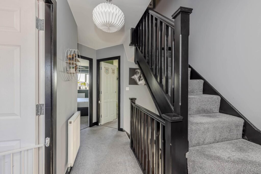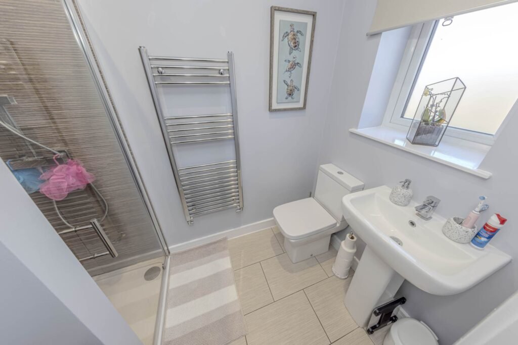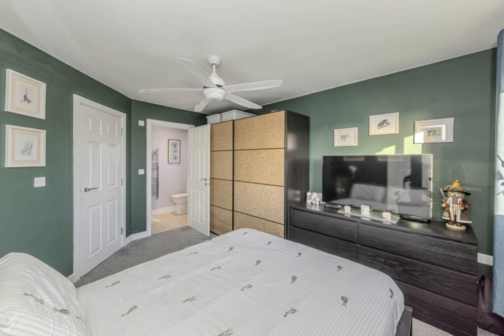 Ascending to the first floor, you will find the master bedroom, a generous and tranquil retreat featuring a private en-suite shower room. This space is designed with comfort and privacy in mind, offering a perfect sanctuary after a busy day. Two further bedrooms are also situated on this floor, each providing ample space and natural light, ideal for children, guests, or a home office. A well-appointed family bathroom serves these bedrooms, fitted with contemporary fixtures and a bath for relaxing soaks.