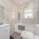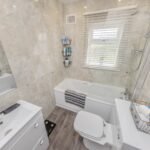 The property features two well-appointed bedrooms, providing comfortable accommodation for a small family or couple. The bathroom is stylishly designed and features a bath/shower combination, perfect for unwinding after a long day.