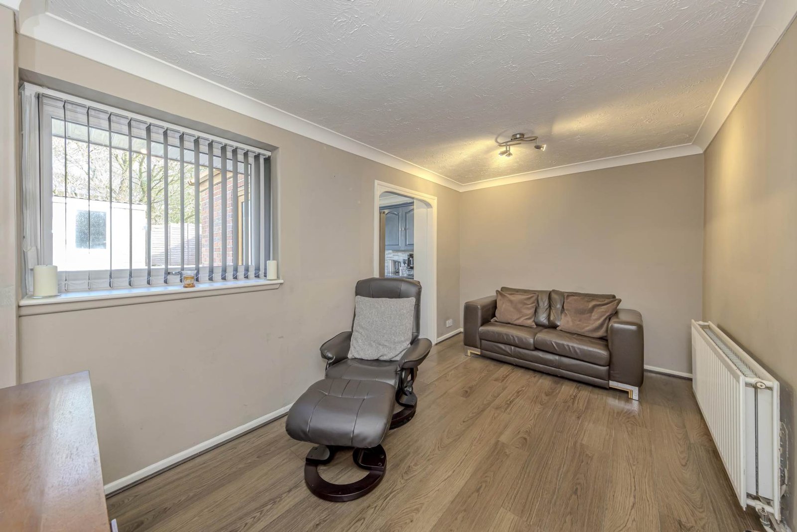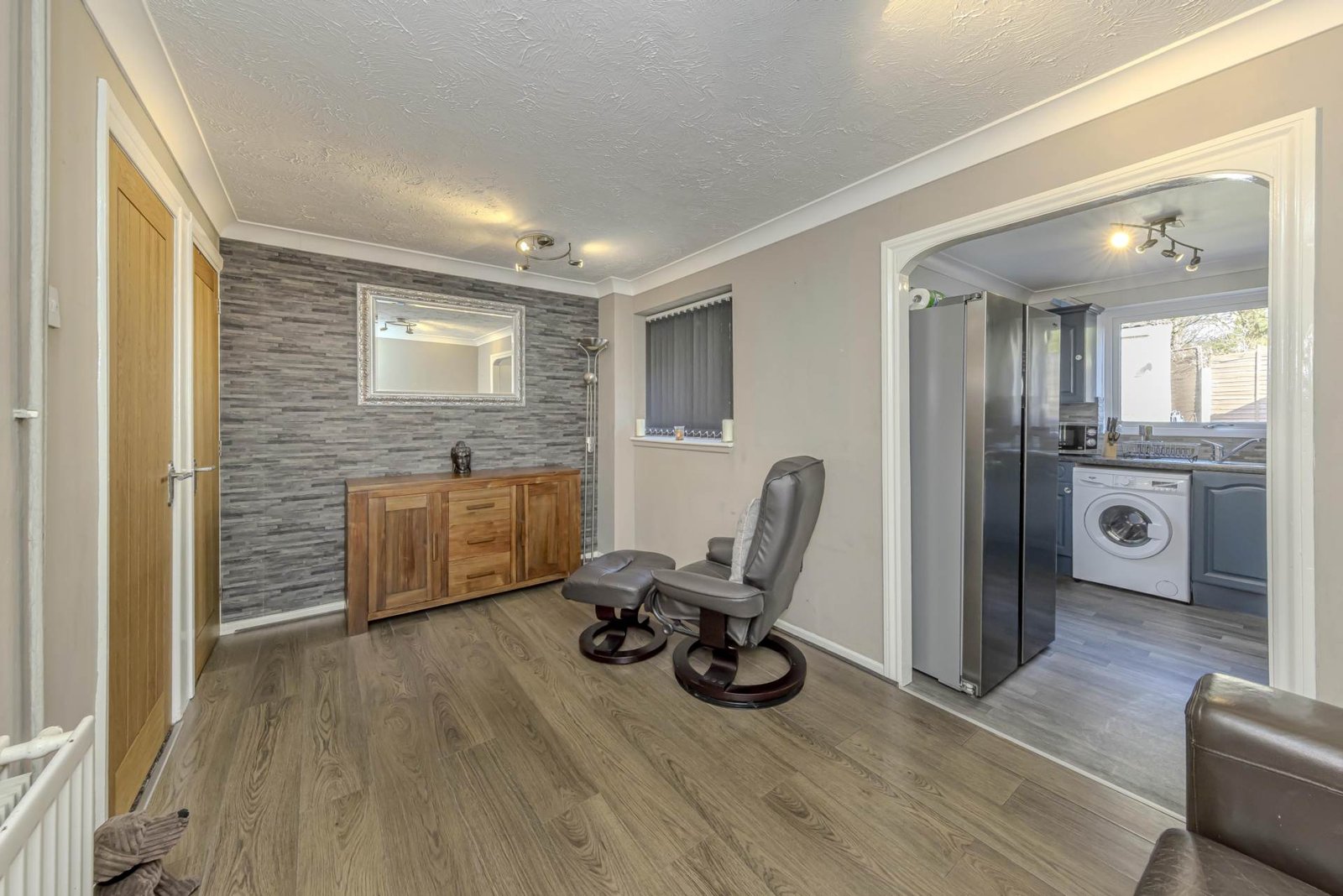 Upon arrival, you are greeted by a neat frontage with a driveway providing convenient off-road parking. Step inside to discover a welcoming hallway that leads into the first of two reception rooms, a cosy yet spacious lounge bathed in natural light from the double-glazed windows. This room offers a perfect space for relaxation or entertaining guests. Adjacent is the second reception room, equally versatile and ideal for use as a formal dining area, home office, or playroom, depending on your needs.