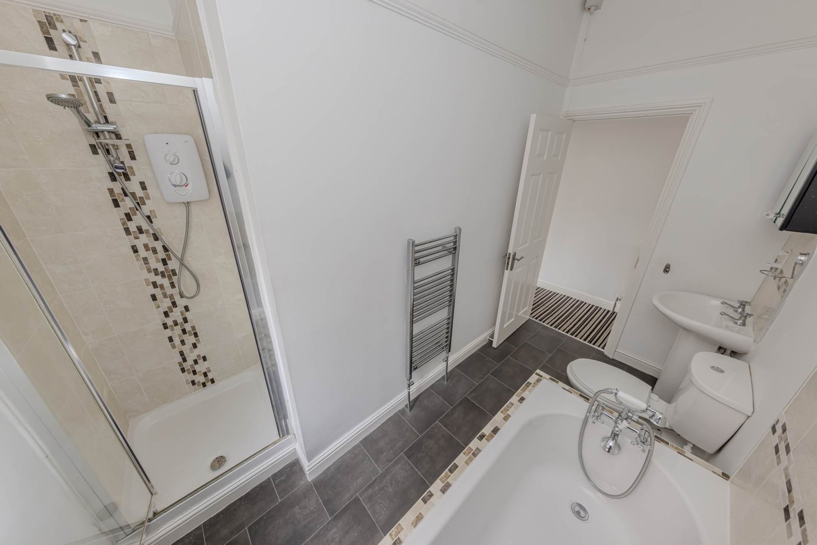 Upstairs, the property features three good-sized bedrooms, each with double glazing and neutral décor, ready to personalise to your taste. The family bathroom is fitted with a modern suite, including a bath with shower over, wash basin, and WC, all finished to a high standard.