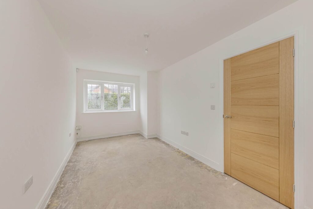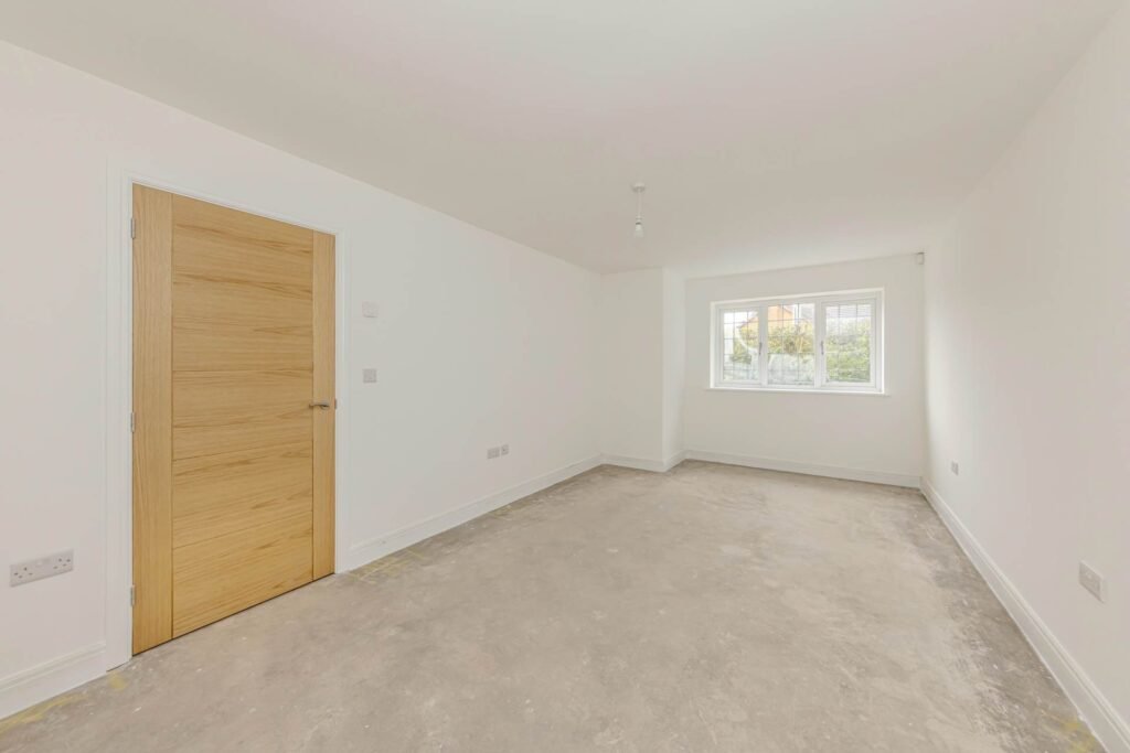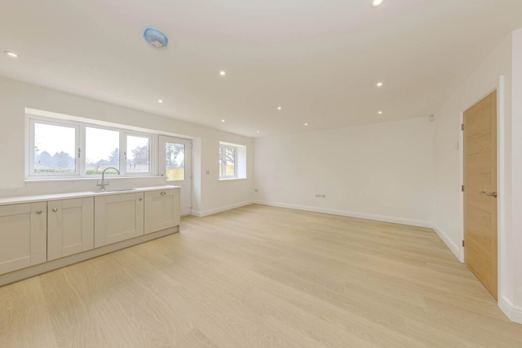 Step inside to discover a spacious and inviting interior, thoughtfully designed to maximise natural light and space. The large reception room serves as the heart of the home, perfect for relaxing with family or entertaining guests. Its neutral décor and quality flooring create a welcoming atmosphere, while large windows frame views of the private garden beyond.