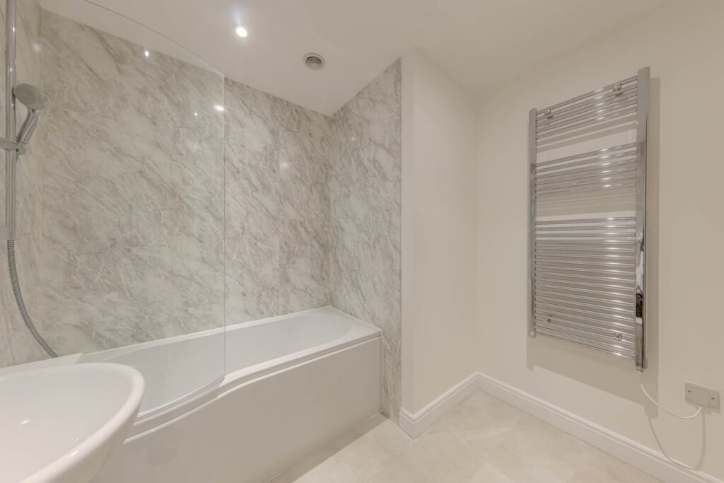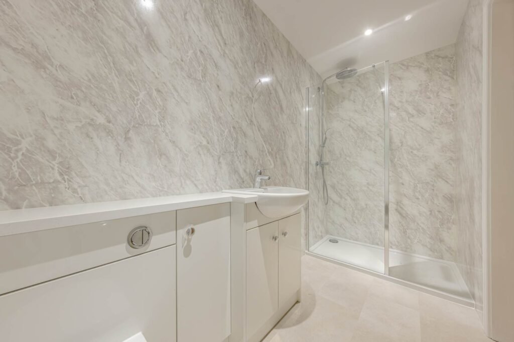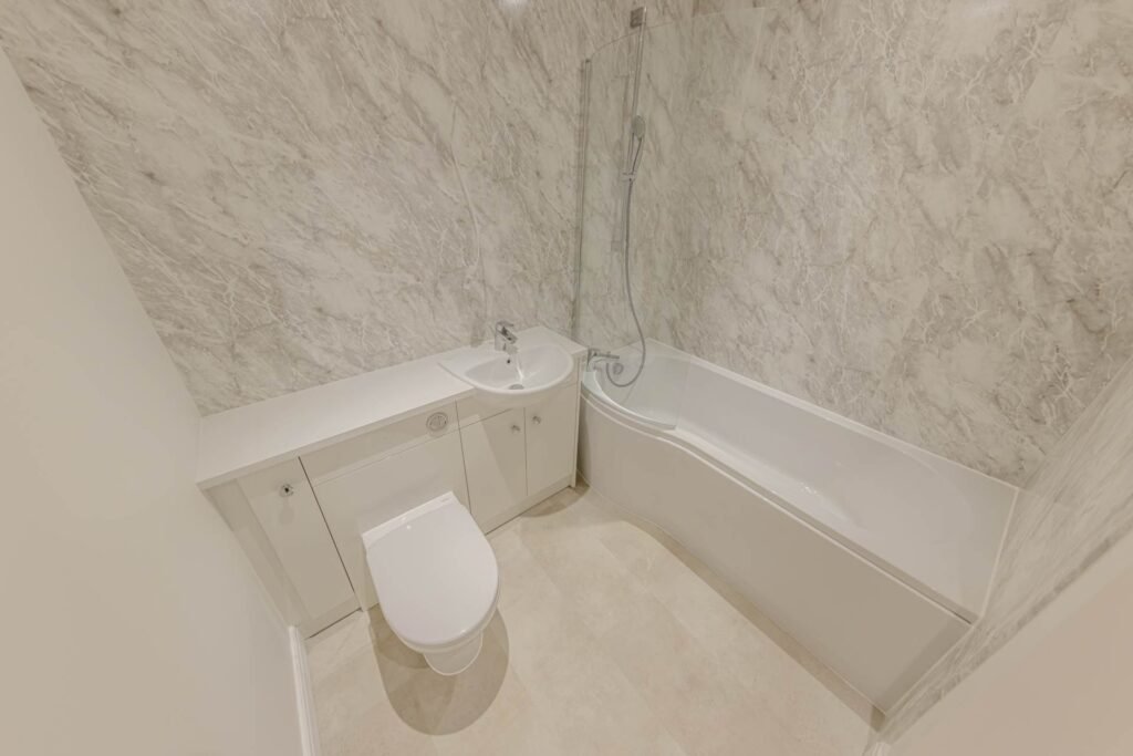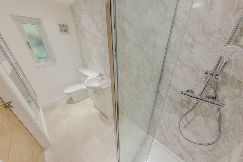 The bungalow offers two well-proportioned bedrooms, both designed with comfort in mind. The master bedroom benefits from a stylish ensuite bathroom, fitted with modern fixtures and a walk-in shower, providing a private retreat for homeowners. The second bedroom is equally spacious and versatile, suitable for guests, a home office, or a hobby room. A second bathroom, finished to the same high standard, serves the rest of the property and visitors alike.
