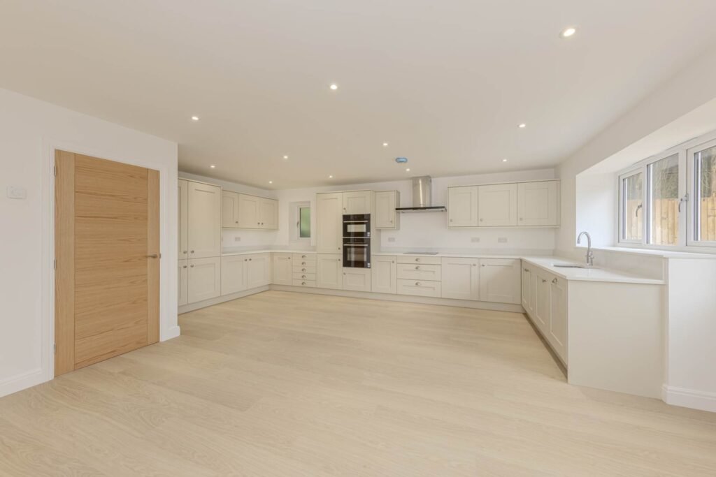Freezer,Dishwasher,Washing mc,Dryer,Oven,Combi oven,Hob,Extract,Quartz to kitchen / vanity tops, and plenty of storage. This open-plan space is ideal for both everyday family meals and more formal dining occasions, with room for a sizeable table and chairs. French doors lead directly out to the garden, allowing for seamless indoor-outdoor living during warmer months.