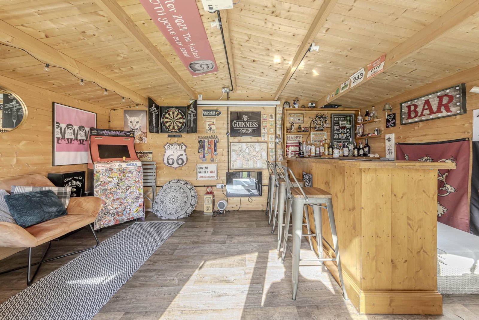 Outside, the property boasts a beautifully landscaped garden with artificial grass, perfect for enjoying the outdoors without the hassle of maintenance. A summer house adds a touch of luxury to the garden, offering a tranquil space to relax and unwind.