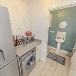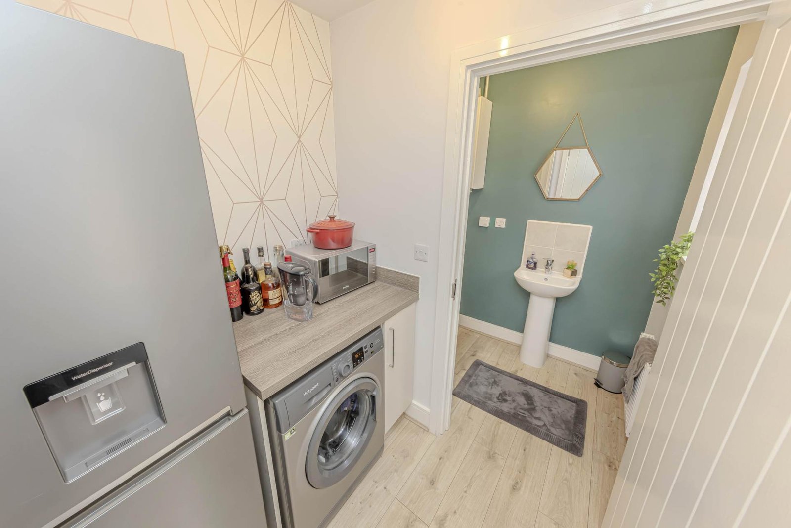 The ground floor also features a convenient utility room and a downstairs WC, adding to the practicality of the home. Moving up to the first floor, you will find three well-appointed bedrooms and a stylish bathroom. The second floor is dedicated to the master bedroom, complete with an en-suite bathroom, providing a private sanctuary for the homeowners.