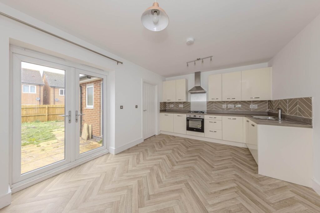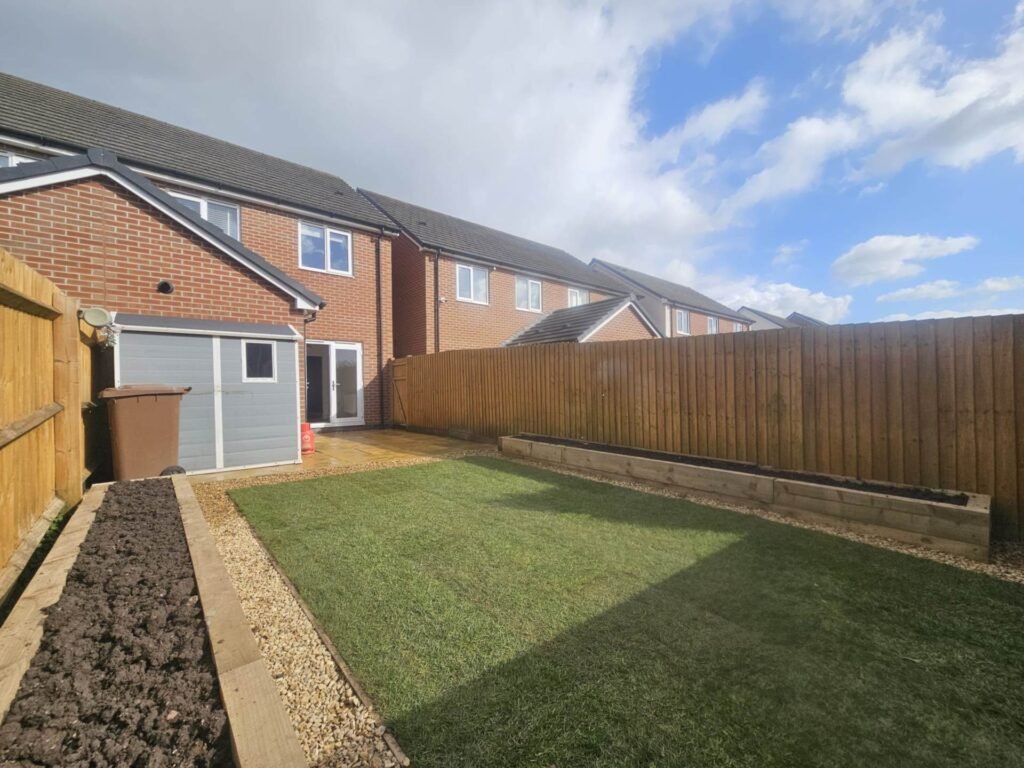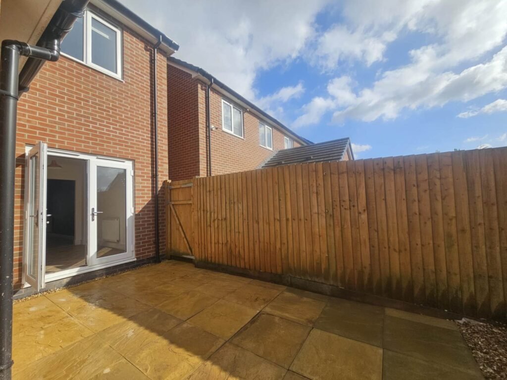 The kitchen diner, situated to the rear of the property, is well-appointed with modern units, plenty of work surface, and integrated appliances, making it a joy for any keen cook. A door leads directly to the private garden, perfect for alfresco dining or simply enjoying a quiet moment outdoors. The garden is well-maintained, featuring a lawn area bordered by mature shrubs and a paved patio, ideal for summer barbecues or children`s play.
