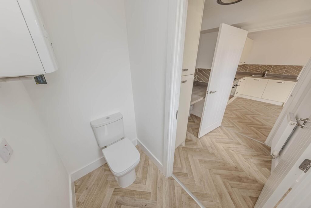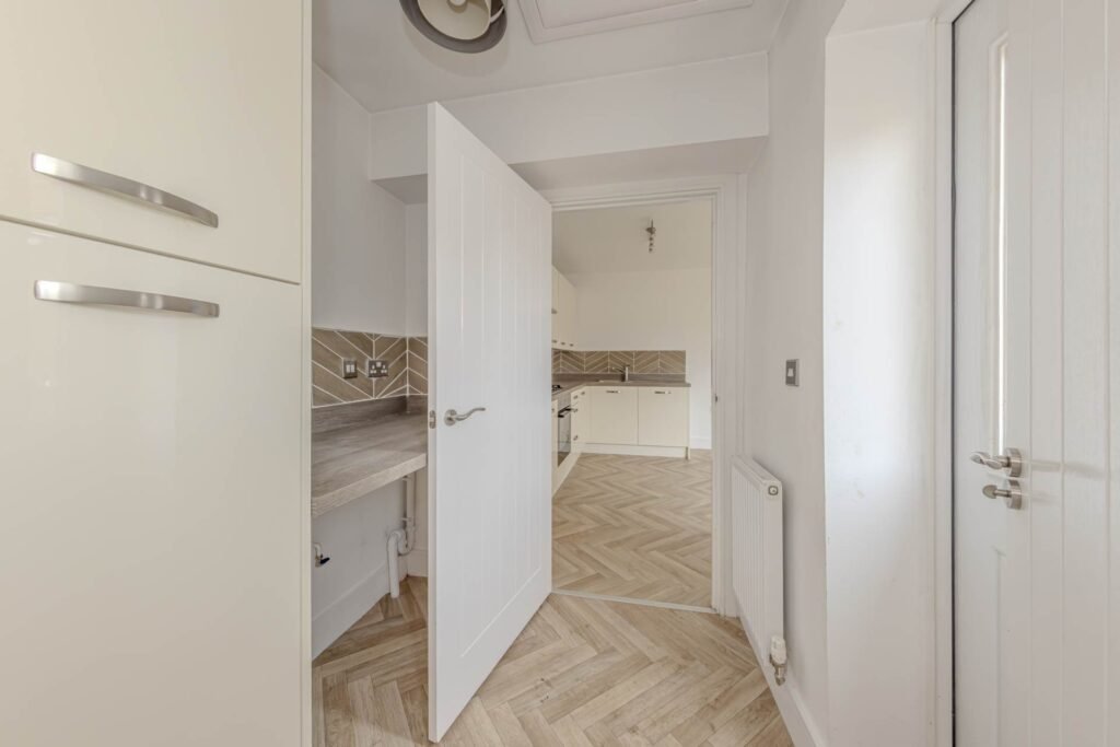 Upon entering, you are welcomed into a spacious reception room, awash with natural light from the large front-facing window. The room provides a versatile space for both relaxing and entertaining, with ample room for comfortable seating and dining arrangements. The neutral décor and quality flooring create a warm and inviting atmosphere, ready for you to personalise.