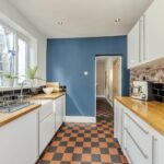 The kitchen is modern and well-equipped, with plenty of storage space. The kitchen also provides access to the utility and groud floor WC.