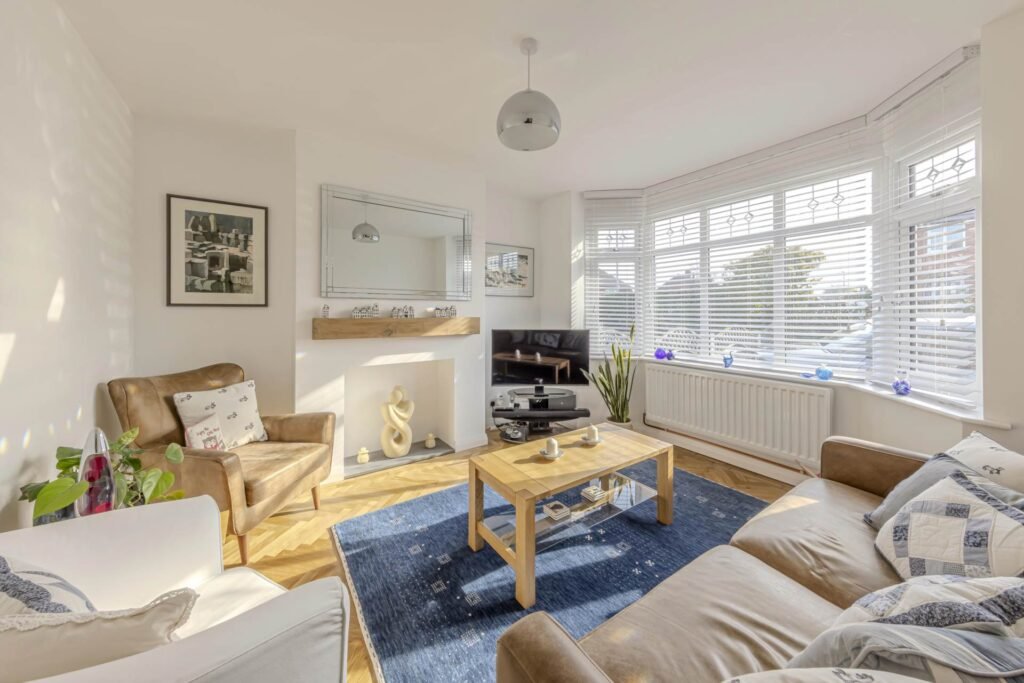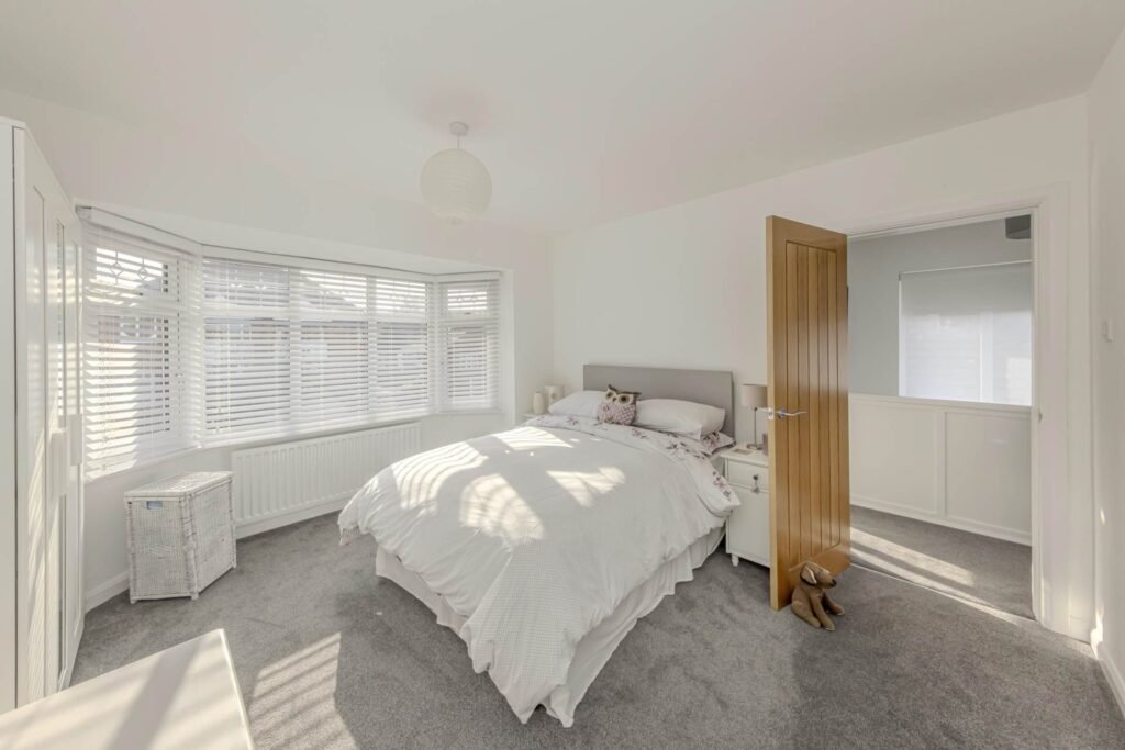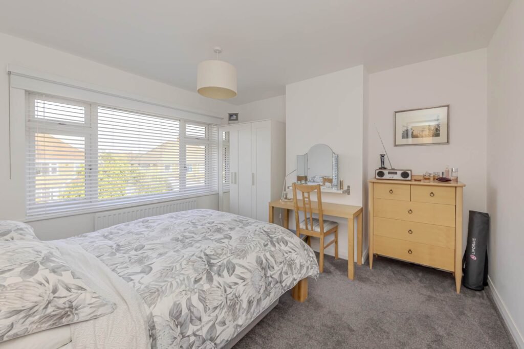Upstairs, the property boasts three well-proportioned bedrooms, each benefiting from the same double glazing and neutral décor, creating a calm and restful atmosphere. The family bathroom has also been modernised, featuring contemporary fittings, a clean white suite, and a shower over the bath, catering perfectly to the needs of a busy household.
