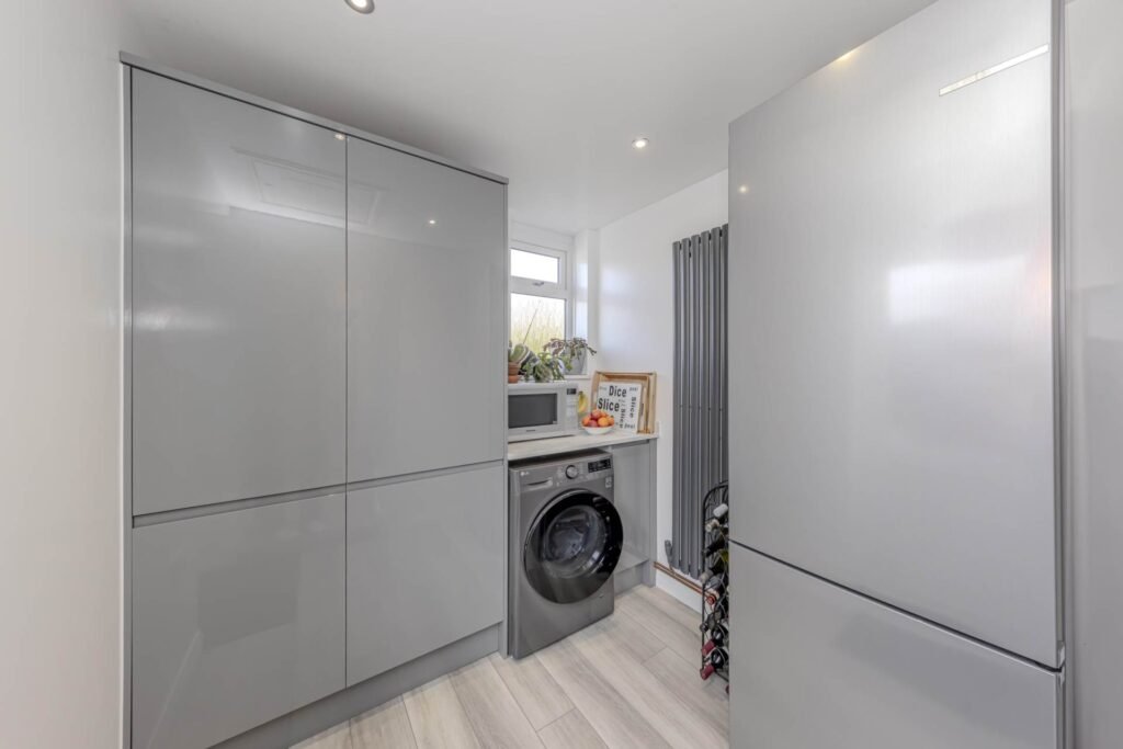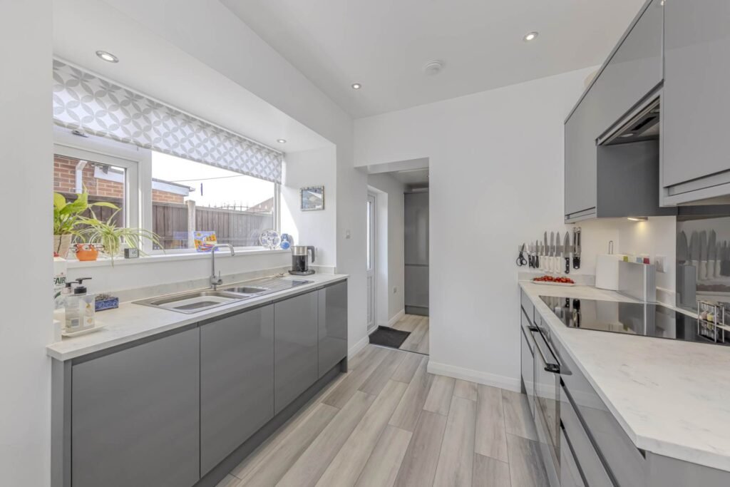 Step inside to discover a welcoming entrance hall leading to two spacious reception rooms. The front lounge is bright and airy, featuring double glazing that floods the room with natural light while ensuring energy efficiency. The second reception room, perfect as a dining area or family room, flows seamlessly into the modern kitchen. This kitchen has been recently updated with sleek units, integrated appliances, and ample work surfaces, making it a joy for cooking and entertaining. Beyond the kitchen, a handy utility room provides additional space for laundry and storage, keeping the main living areas clutter-free.