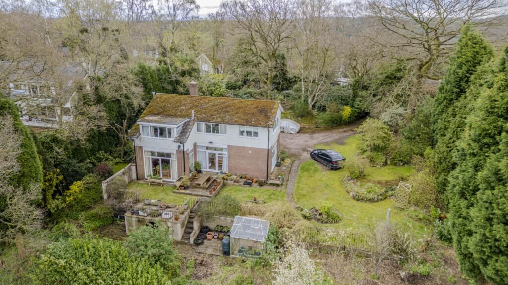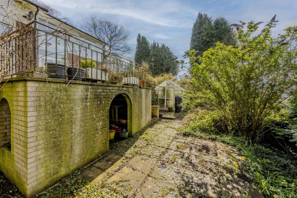 The generous grounds are approached via a private driveway and comprise tiered lawned grounds, patio seating areas and a host of mature shrubbery planting. There is ample parking and a large garage.