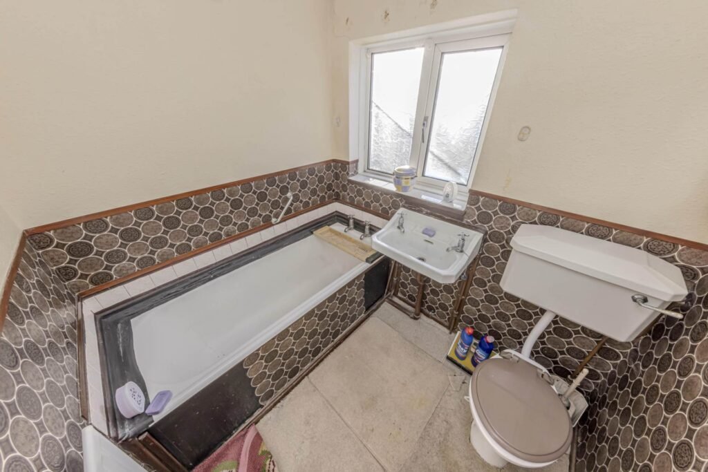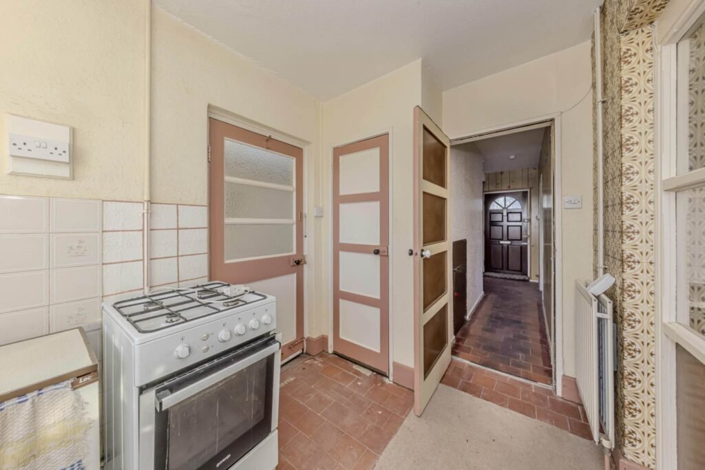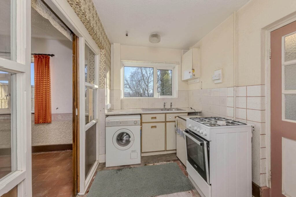 The property comprises a spacious reception room, providing a versatile living space that benefits from natural light through double-glazed windows. The kitchen area, although in need of updating, offers a practical layout with ample room for modern appliances and storage solutions. Upstairs, there are three well-proportioned bedrooms, each offering generous space and the potential to be transformed into comfortable, personalised rooms. The bathroom, currently basic, awaits refurbishment to create a fresh and functional family bathroom.