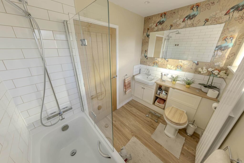 The kitchen is thoughtfully designed with ample work surfaces and storage units, equipped to meet all your culinary needs. Whether you`re preparing a quick breakfast or a family meal, this space offers both functionality and style. Upstairs, you will find three well-proportioned bedrooms, each benefiting from double glazing that ensures a quiet and comfortable environment. The bathroom is modern and well-maintained, featuring a bath with an overhead shower, a wash basin, and a WC, all finished to a high standard.
