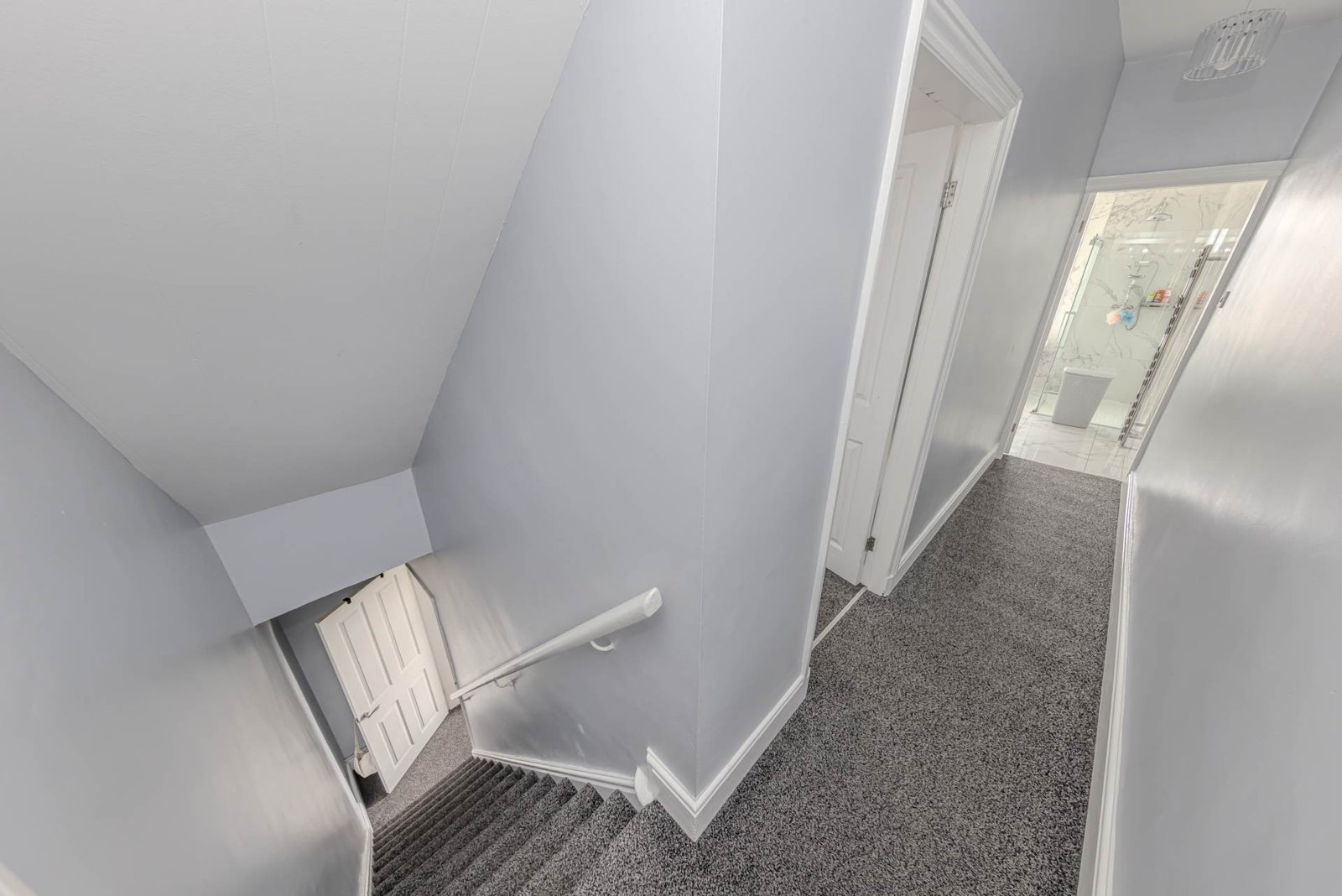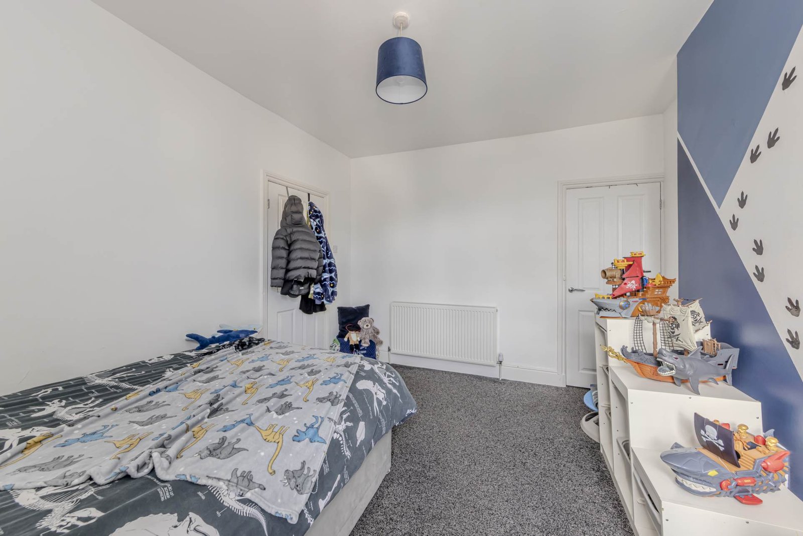Upstairs, you will find two generous double bedrooms, each offering plenty of natural light and space for wardrobes and additional furniture. The large, modern bathroom serves the property well, featuring a sleek suite including a bath and walk-in shower, wash basin, and WC, all finished to a high standard.