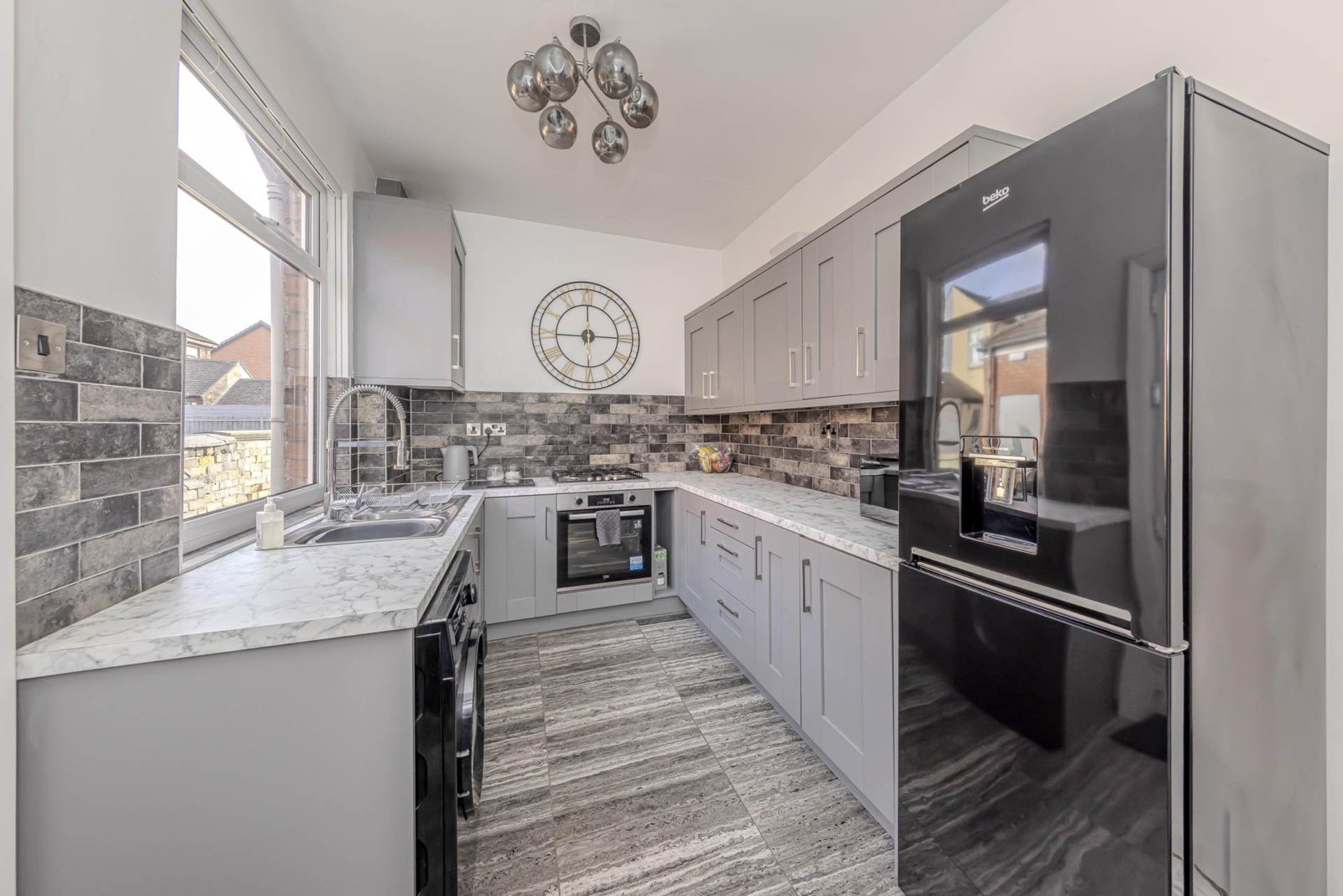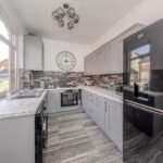 The modern kitchen has been thoughtfully designed with a range of contemporary units and ample work surfaces, perfect for preparing meals with ease. There is plenty of storage space and room for essential appliances, making it a practical and stylish heart of the home.