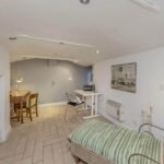 The kitchen is well-equipped with modern appliances and ample storage space, making meal preparation a breeze. From the kitchen, you can access the rear garden, a peaceful oasis perfect for enjoying al fresco dining or simply unwinding after a long day.