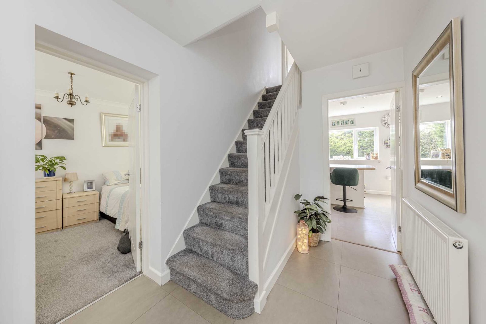 The property also has a spacious garage, as well as extra storage space. The garage is accessible via the private driveway, which can accommodate up to two additional cars.