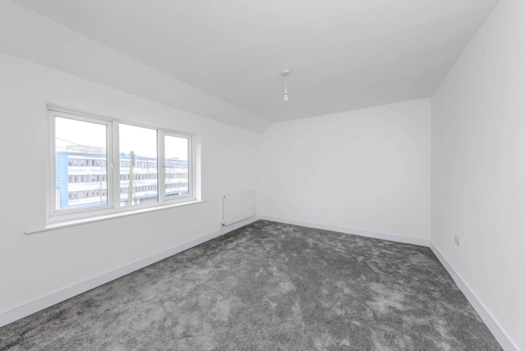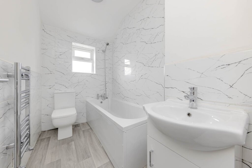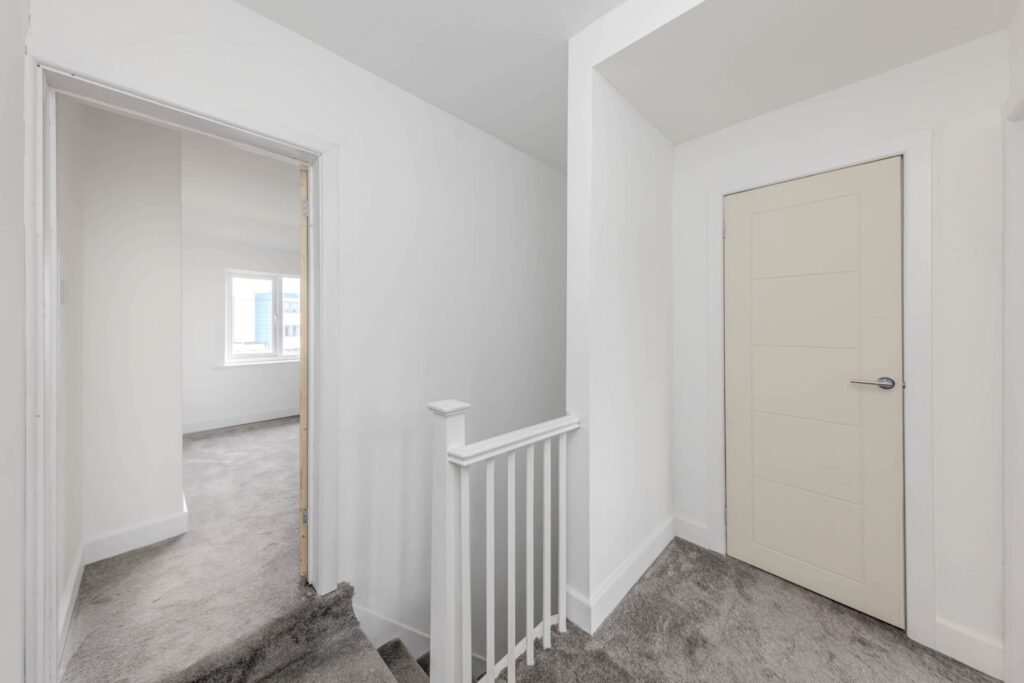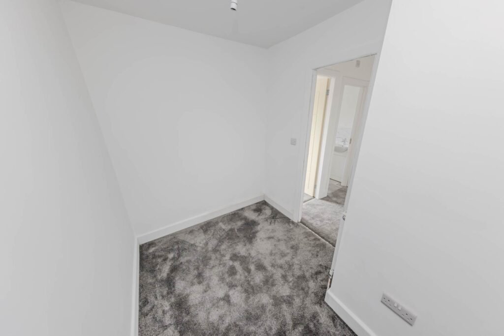 Upstairs, there are two bedrooms, both of which are generously sized and have plenty of natural light. The bathroom is also located on this floor and is fitted with a modern suite.