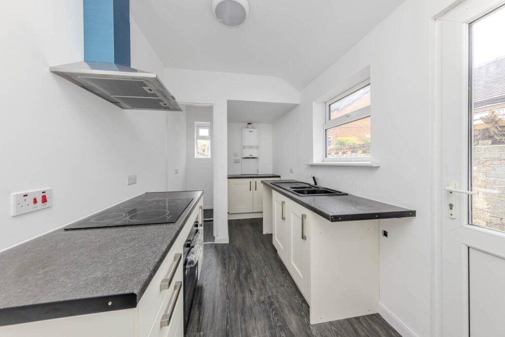The kitchen is located at the rear of the property and overlooks the garden. It is fitted with modern appliances and has ample storage space. The garden is a great space for entertaining guests or enjoying a quiet evening outdoors.