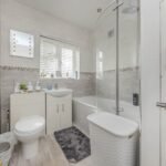 Upstairs, you will find three well-appointed bedrooms, each offering plenty of natural light and storage space. The bathroom is sleek and stylish, with a contemporary design.