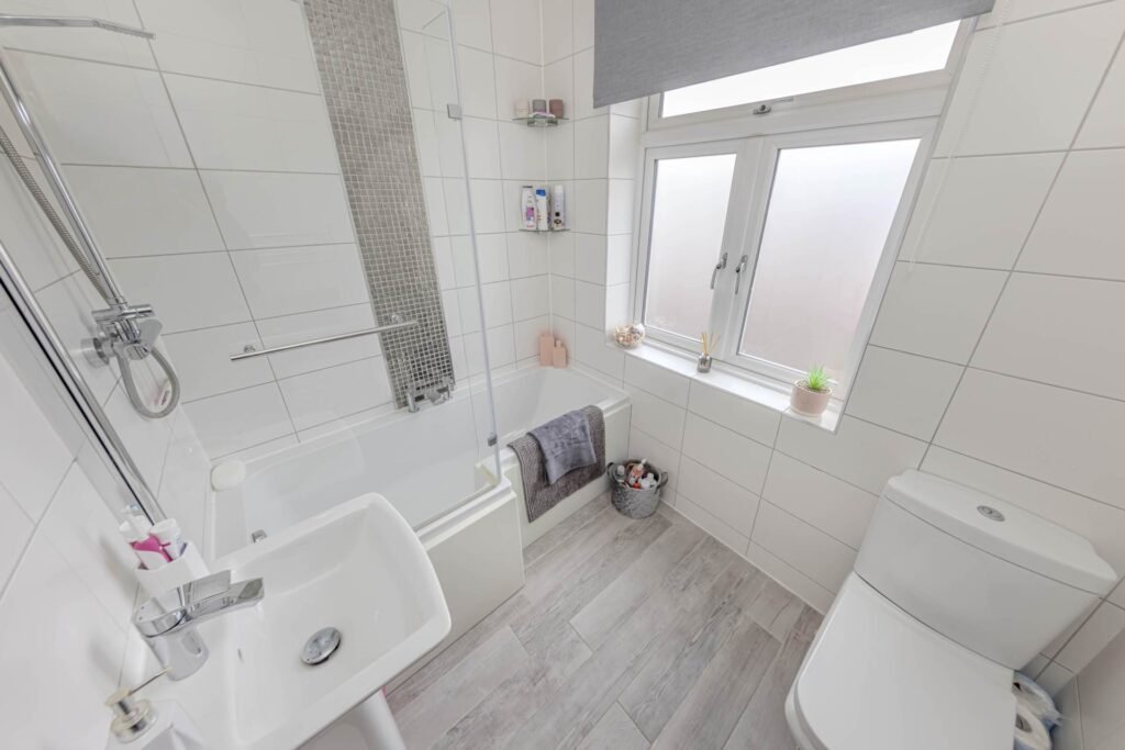 Upstairs, you will find two well-proportioned bedrooms, both of which are bright and airy. These rooms offer flexibility, whether you require a guest room, home office, or nursery. The bathroom is conveniently located on the same floor and features a modern suite, including a bath with shower over, wash basin, and WC.