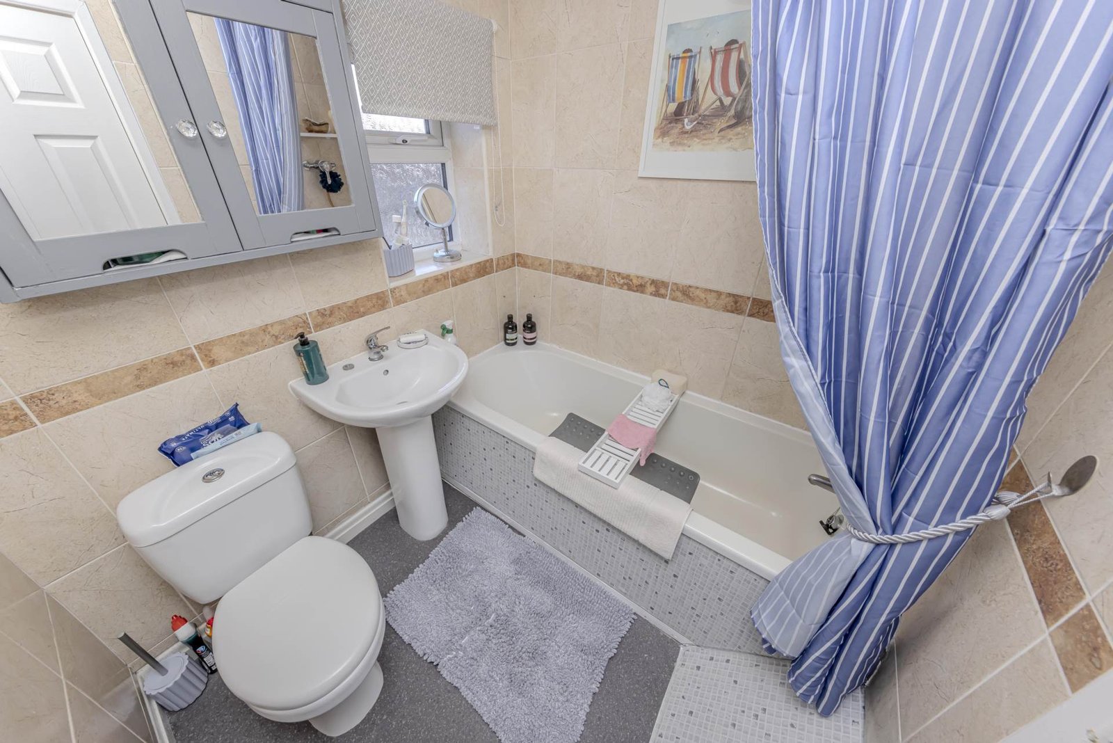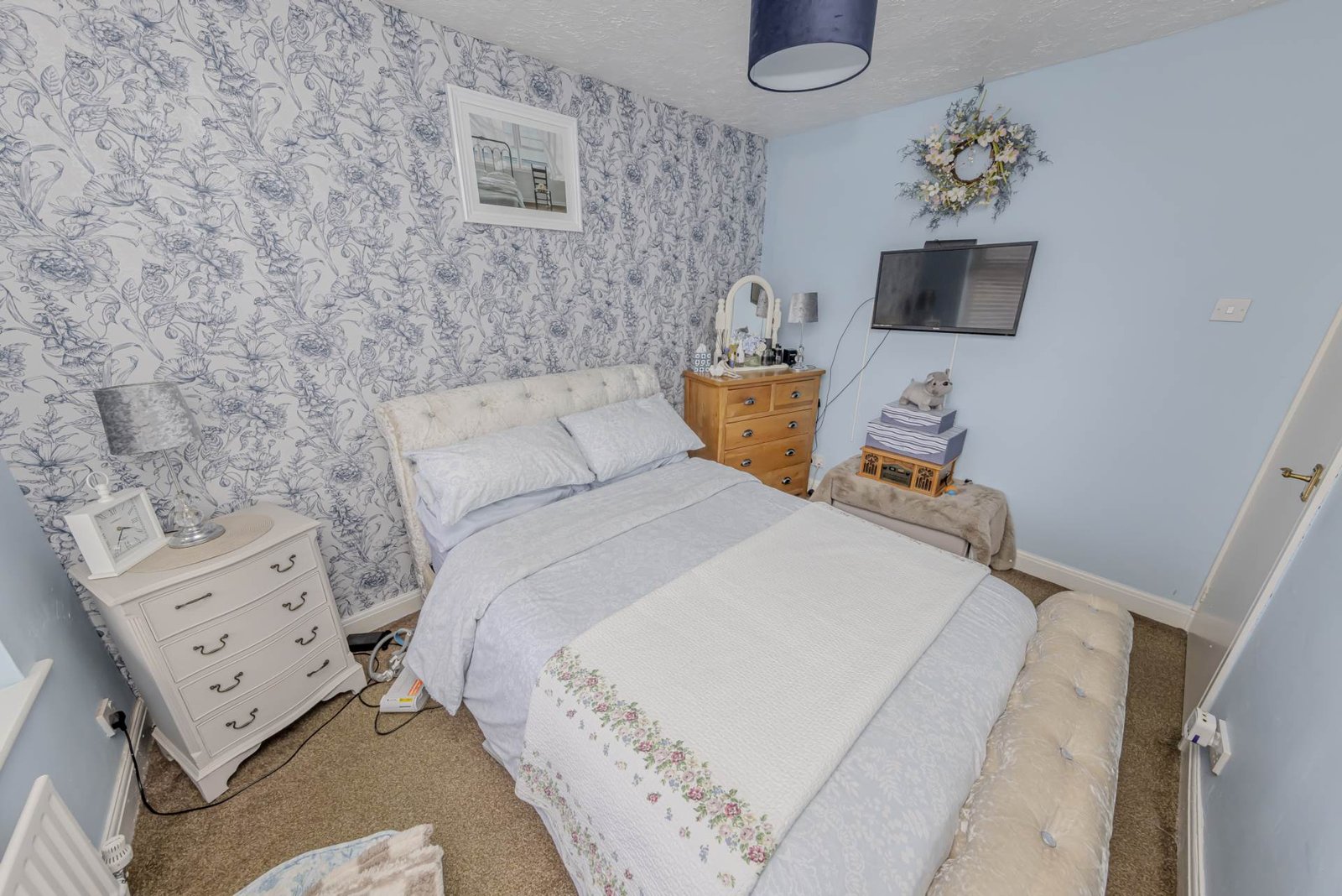 Upstairs, there are three well-proportioned bedrooms, each offering flexibility to suit a variety of needs, whether as bedrooms, a home office, or hobby room. The family bathroom is fitted with a modern suite, including a bath with shower over, wash basin, and WC.