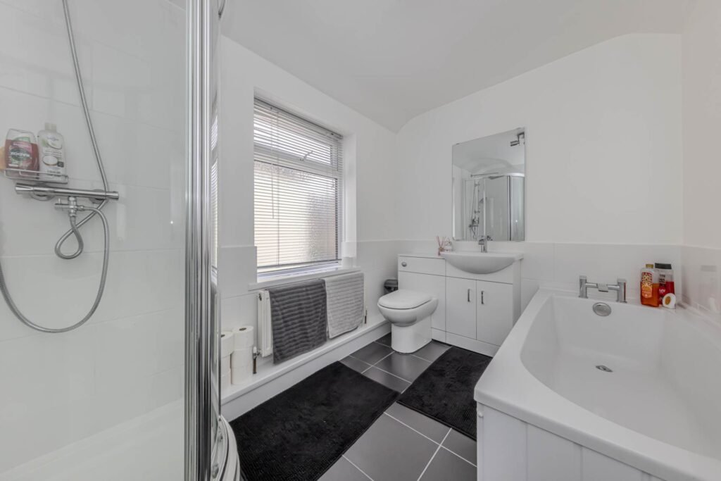 Upstairs, the property features three well-proportioned bedrooms, each benefiting from the warmth of gas central heating and the comfort of double glazing with secondary glazing. The first-floor bathroom is fitted with a traditional suite, including a bath and a free standing shower, wash basin, and WC, all presented in good order.