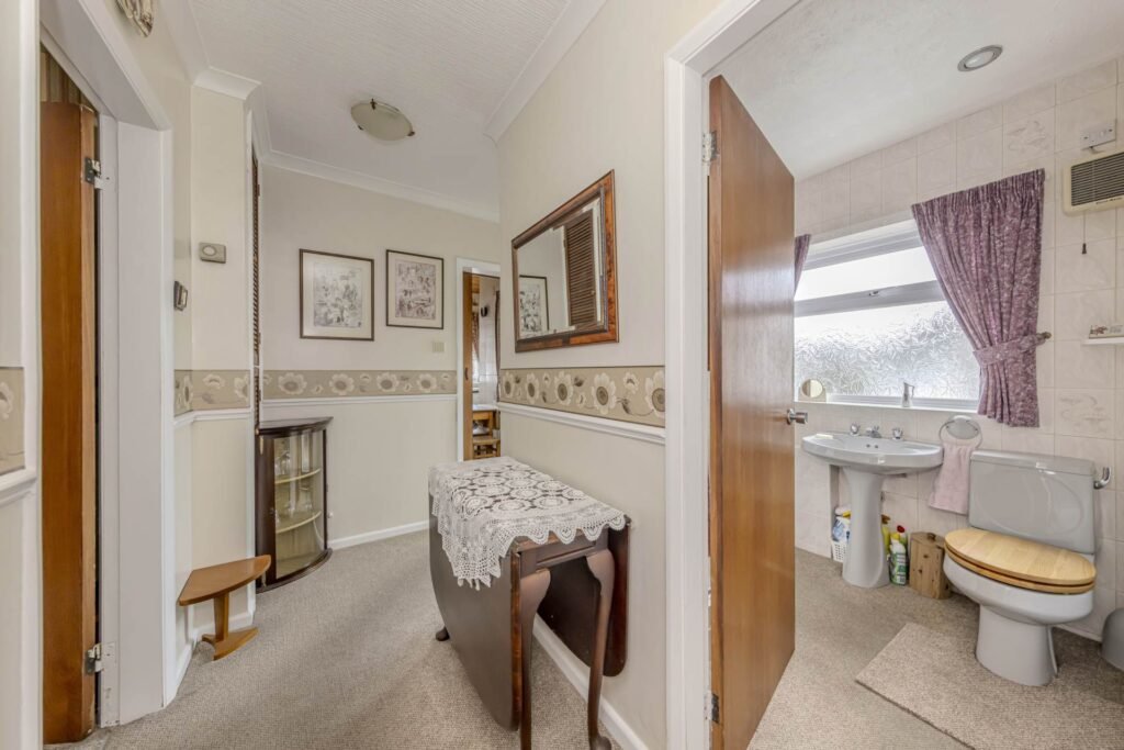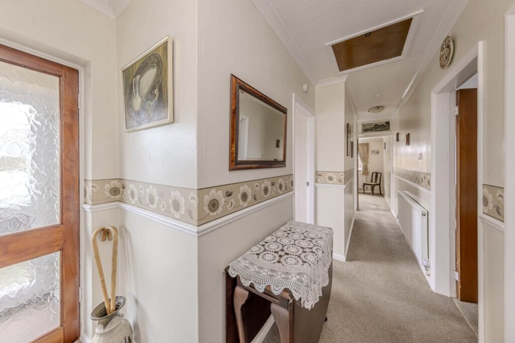 Upon arrival, you are greeted by a neat frontage with parking space for two vehicles, ensuring convenience for residents and visitors alike. The bungalow benefits from double glazing throughout, providing excellent insulation and noise reduction, while gas central heating guarantees warmth and efficiency during the colder months.