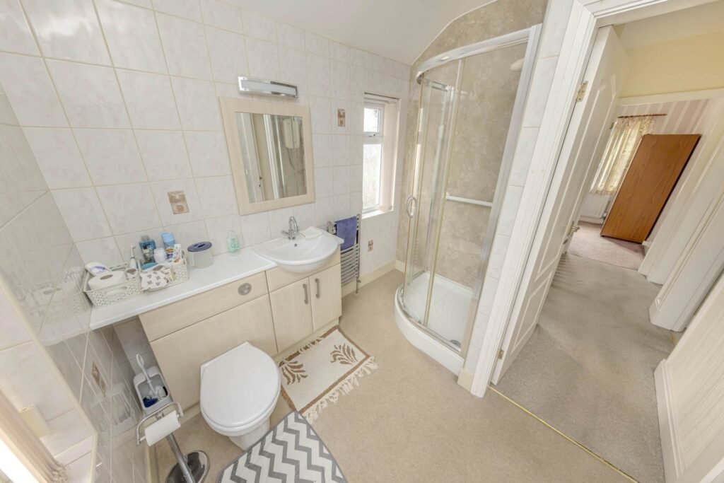 Upstairs, you will find three bedrooms, all of which are bright and airy. The family bathroom is well-appointed with a bath, shower, wash basin, and WC.