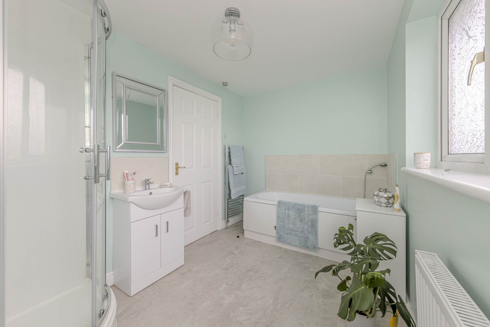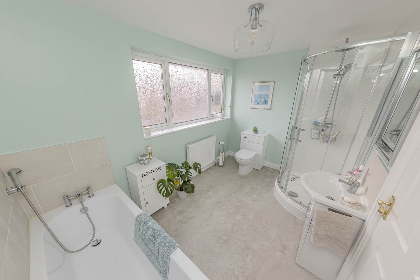 Upstairs, the property comprises three good-sized bedrooms, each benefiting from double glazing and gas central heating, ensuring comfort throughout the year. The bedrooms are bright and airy, offering plenty of space for wardrobes and additional furniture. The large bathroom serves the household well, featuring contemporary fittings and a layout that maximises space and functionality.