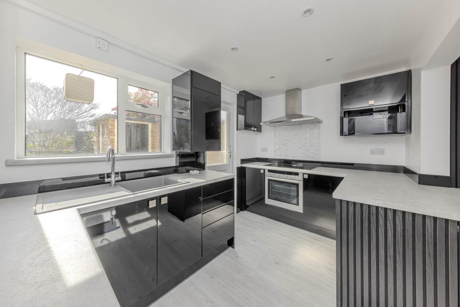 Upon entering, you are welcomed into a cosy living room, featuring neutral décor and large windows that allow natural light to flood the space, creating a warm and inviting atmosphere. Adjacent to this is a second reception room, versatile in use whether as a dining area, home office, or snug, it offers flexibility to suit your lifestyle. The kitchen is fitted with modern units and appliances, providing a practical and efficient space for meal preparation.