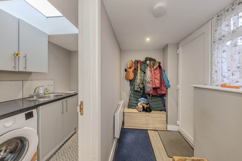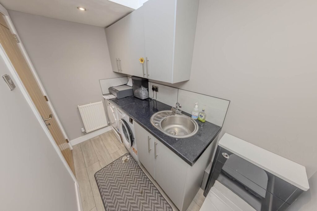 Upon entering, you are welcomed into a bright and airy hallway that leads to two distinct reception areas, thoughtfully designed to maximise space and functionality. The first reception room provides a cosy yet spacious living area, ideal for relaxing or entertaining guests. The second reception area is an impressive kitchen diner, fitted with modern units and ample work surfaces, creating a sociable hub for family meals and gatherings. Adjacent to the kitchen diner is a separate utility room, offering additional storage and laundry facilities, along with a convenient WC.