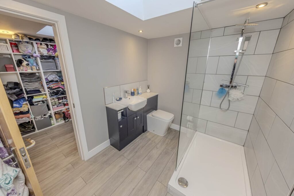 One of the stand out features of this property is the converted garage, which has been cleverly transformed into a versatile space complete with gas central heating, a kitchenette, and its own WC. This area could serve as a home office, gym, or even a self-contained annexe, providing excellent flexibility to suit your lifestyle needs.