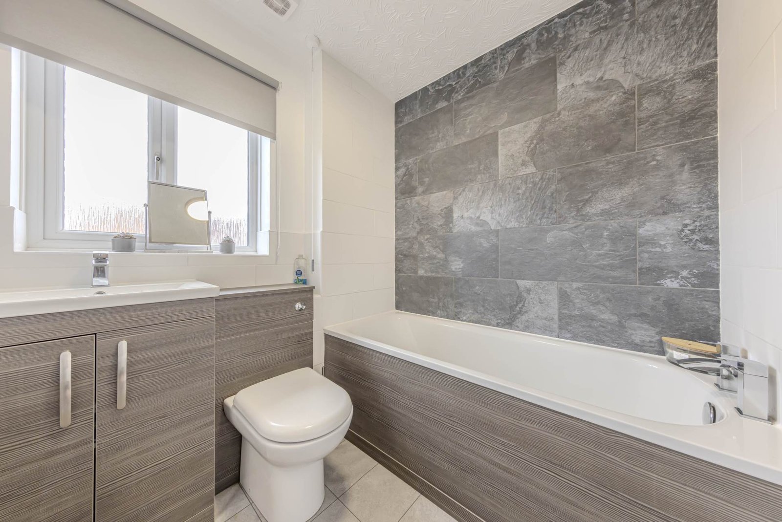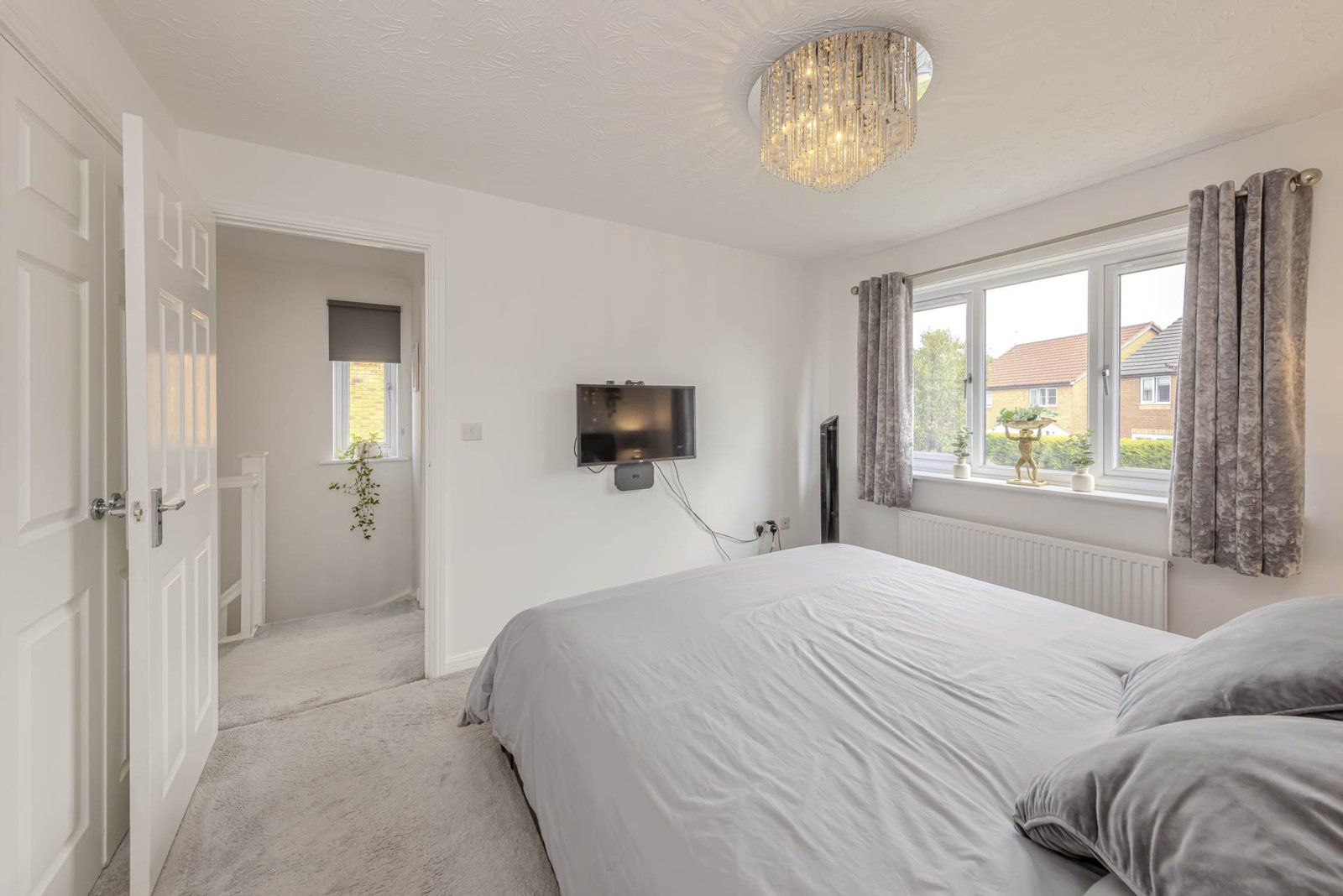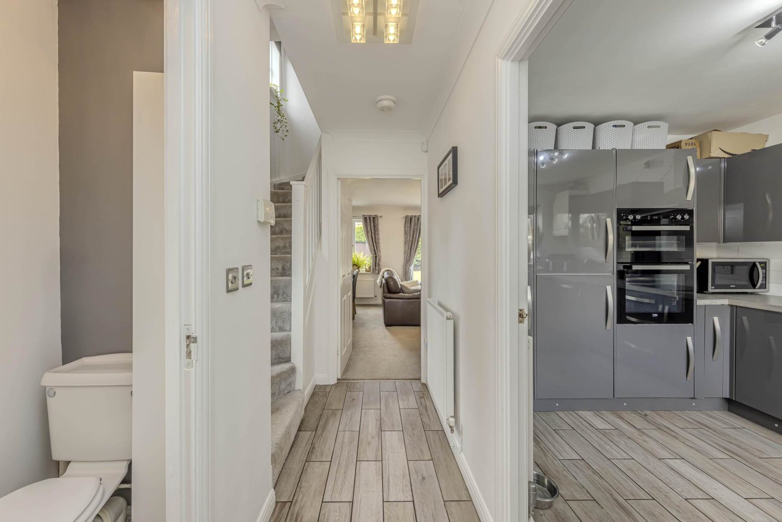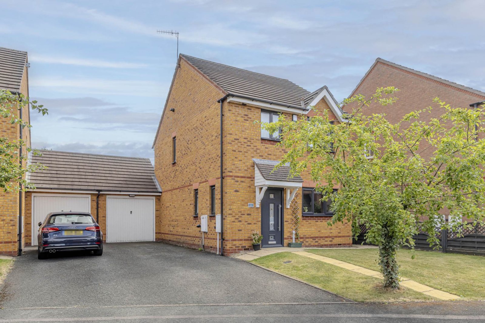 The property boasts three well-appointed bedrooms, with the master bedroom featuring an ensuite bathroom for added convenience. The two additional bedrooms are perfect for children or guests, and share a stylish family bathroom.
