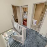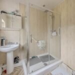 Upstairs, you will find three generously sized bedrooms, all offering plenty of natural light and storage space. The family bathroom is sleek and stylish, featuring a bath with overhead shower, wash basin, and toilet.