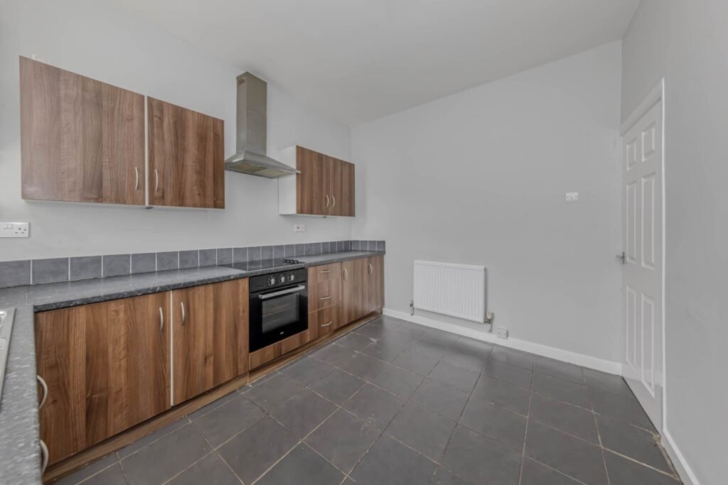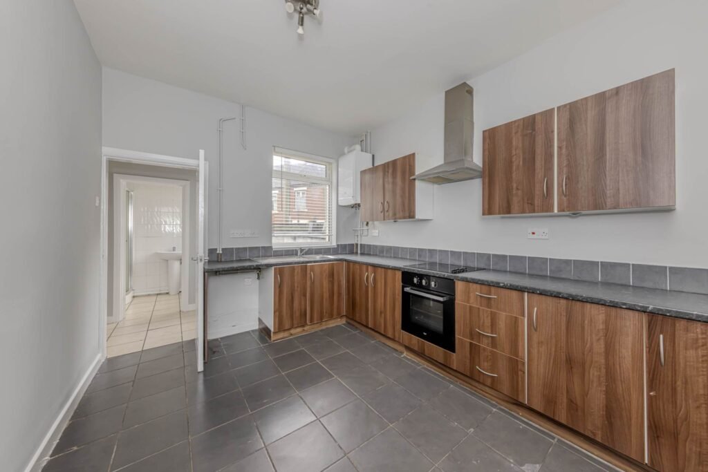The kitchen, located to the rear of the property, is functional and well laid out, offering sufficient worktop space and storage cupboards. It provides direct access to the rear yard, ideal for outdoor seating or a small garden area, perfect for enjoying a morning coffee or evening unwind.