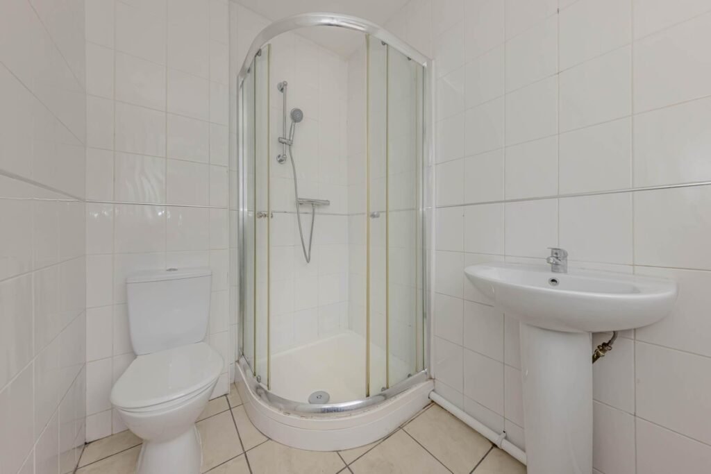 Upstairs, you will find two well-proportioned bedrooms, both featuring large windows that flood the rooms with daylight. These rooms offer flexibility, whether you require a master bedroom and a guest room, or a home office and bedroom combination. The bathroom is conveniently situated on the first floor and includes a three-piece suite comprising a bath with overhead shower, wash basin, and WC, all finished in a clean, modern style.