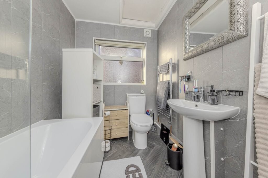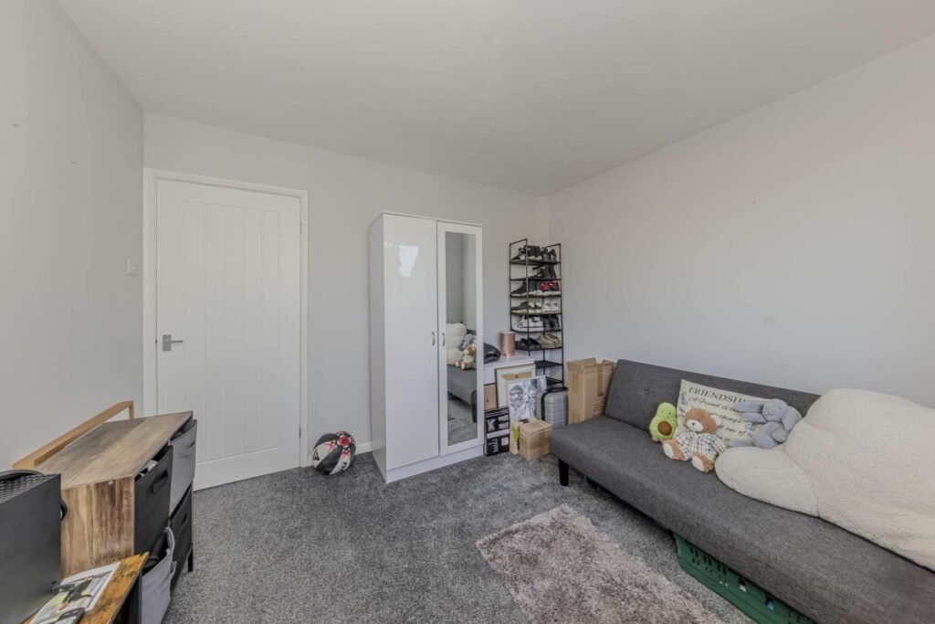 Upon entering, you are welcomed into a bright and airy reception room, perfect for relaxing or entertaining guests. The neutral décor and large double-glazed windows allow natural light to flood the space, creating a warm and inviting atmosphere. The modern kitchen has been thoughtfully fitted with contemporary units and ample work surfaces, making it ideal for preparing meals with ease. There is plenty of storage space for all your kitchen essentials, and the layout ensures a smooth flow between cooking and dining areas.