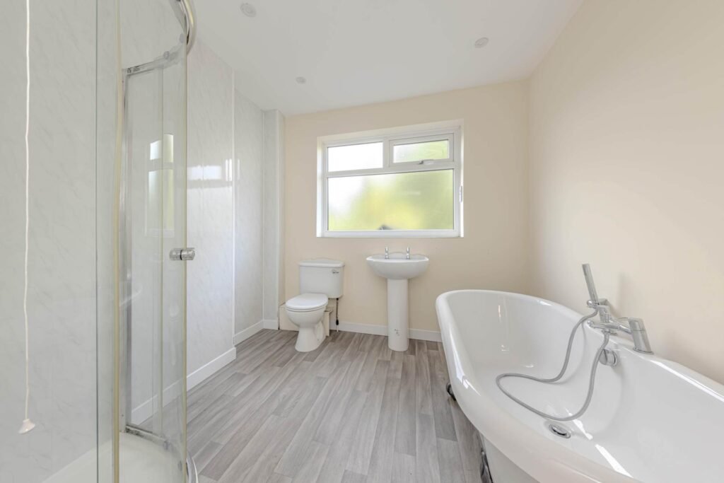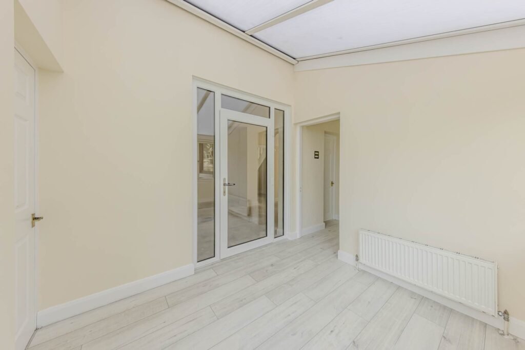 Upon entering the property, you are greeted by three spacious reception rooms, including a sun room to the rear that floods the space with natural light. The perfect spot to relax and unwind, the sun room offers stunning views of the garden, creating a peaceful oasis within the home.