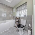 Upstairs, you will find three well-proportioned bedrooms, all flooded with natural light. The family bathroom is stylishly tiled and features a bath with overhead shower, wash basin, and WC.