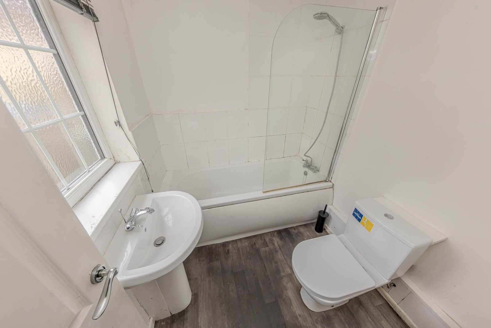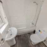 Upstairs, the property boasts two good-sized bedrooms, each featuring double glazing to ensure a quiet and comfortable environment. The bathroom is fitted with a modern suite, including a bath with an overhead shower, a wash basin, and a WC, all finished to a high standard.